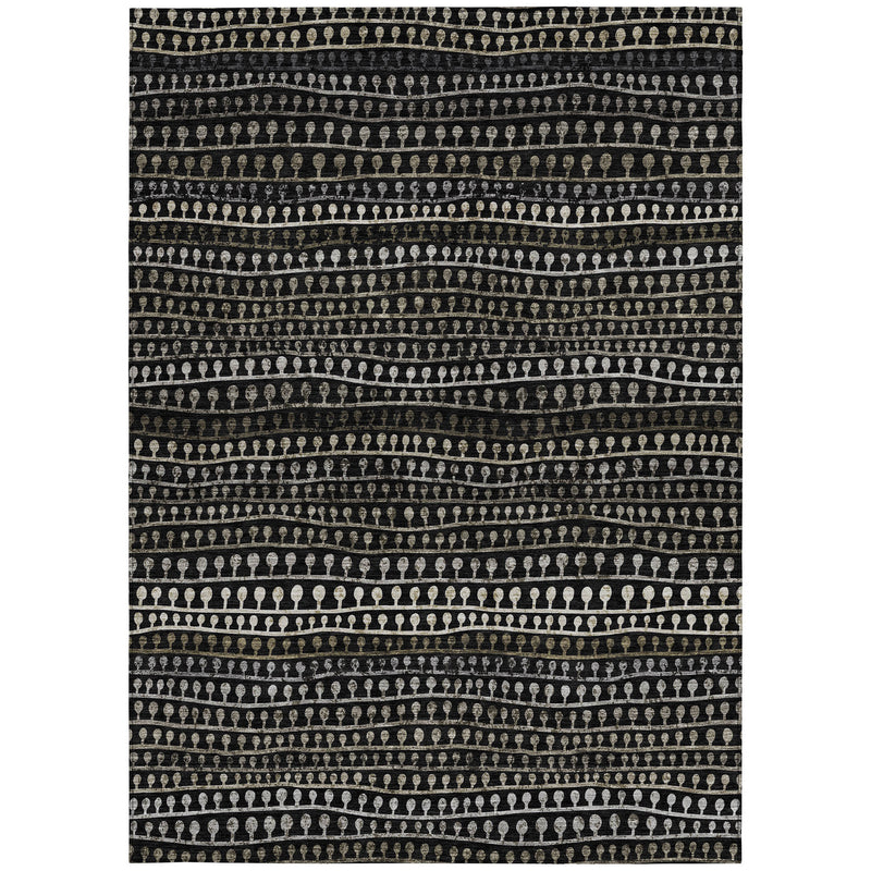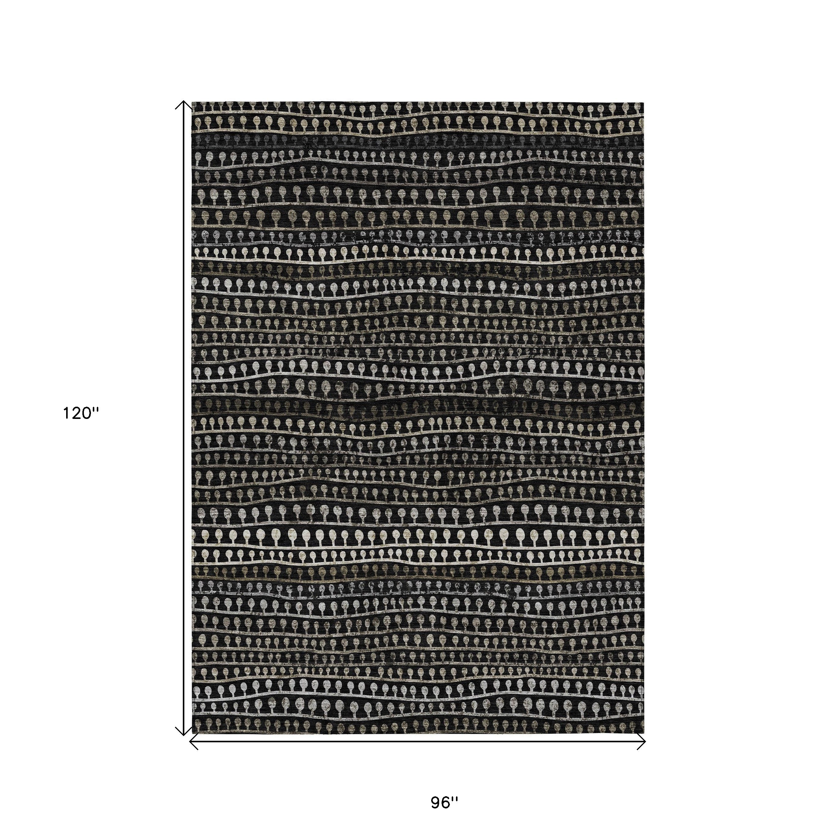 8' X 10' Taupe Charcoal And Gray Striped Washable Indoor Outdoor Area Rug