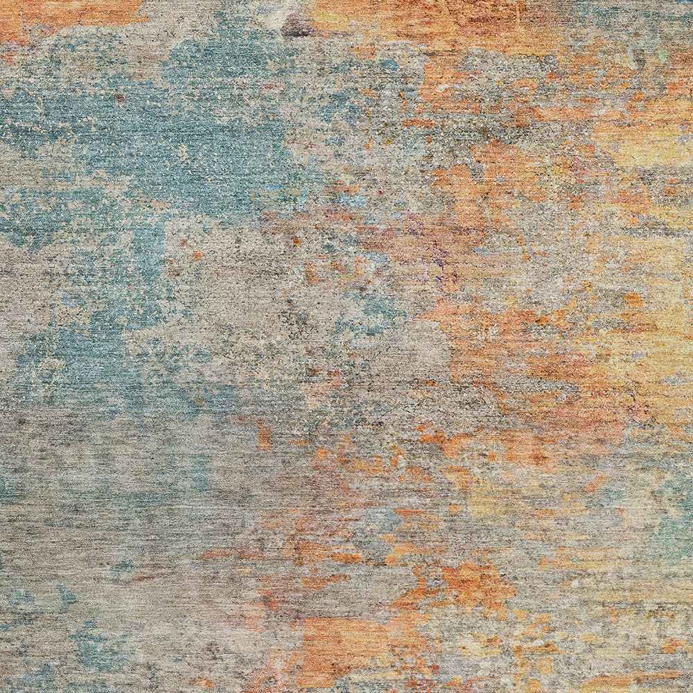 8' X 10' Teal Blue Abstract Washable Indoor Outdoor Area Rug