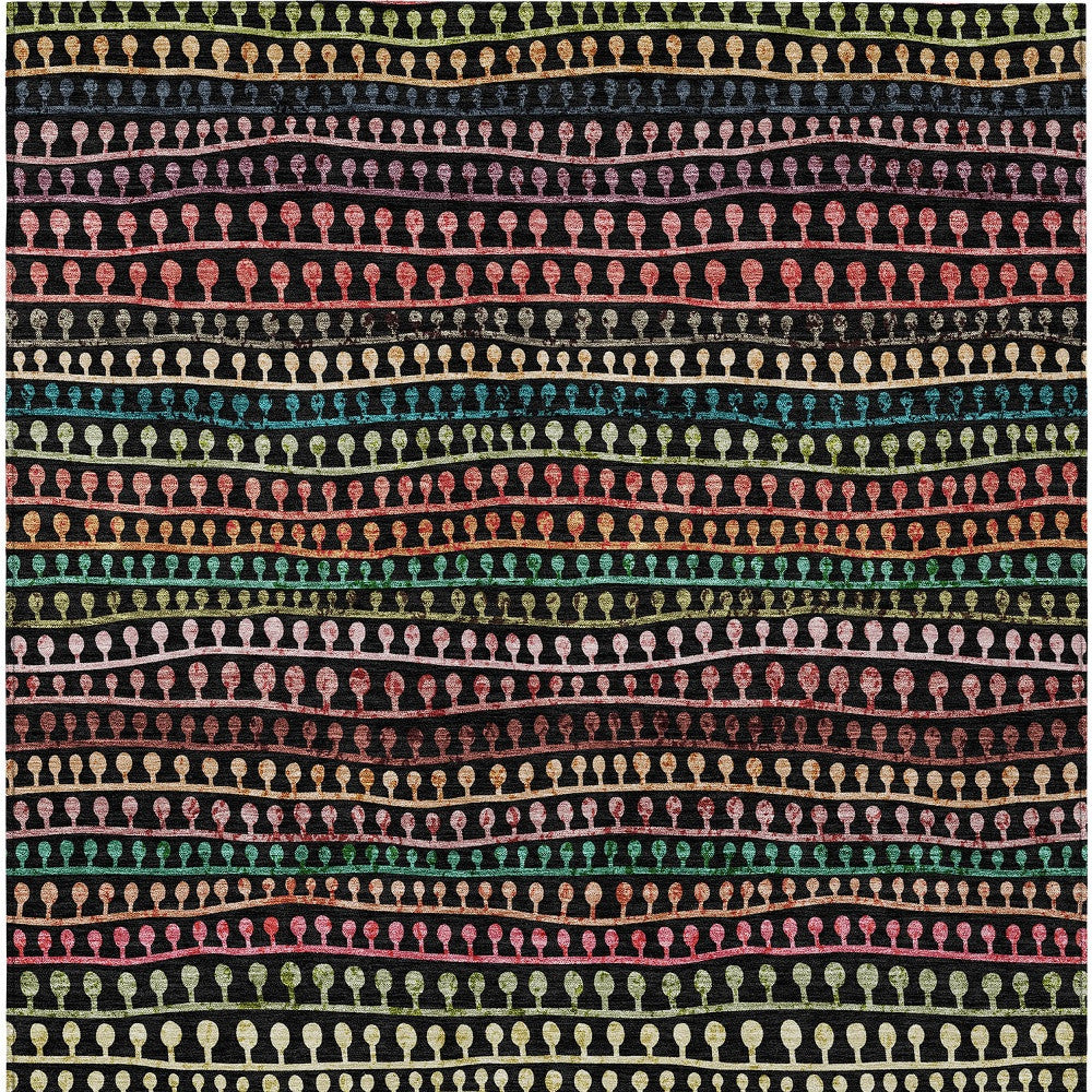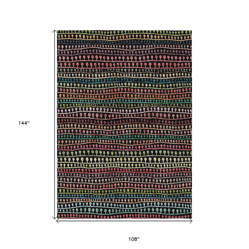9' X 12' Black Green And Gold Striped Washable Indoor Outdoor Area Rug