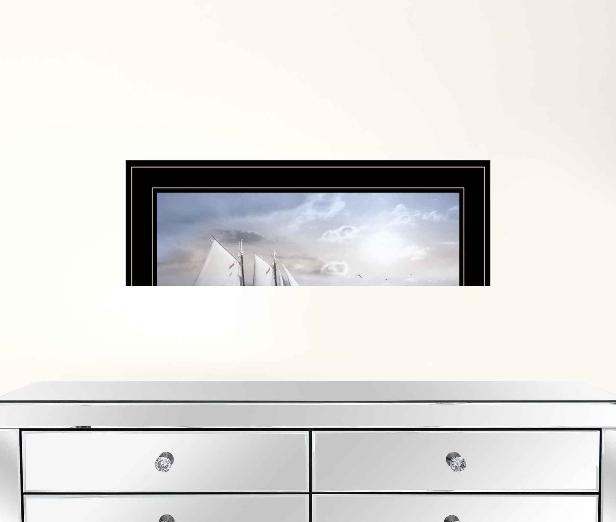 The adventure on the seas 2 black framed print wall art is the perfect decorative accessory for your home. This transportation inspired wall art features a sailboat icon and will bring a refreshing look and perspective to your walls. This print is a visual artistic expression that allows you to decorate your space in style. Reproduced for you on paper, this hanging decorative accent will be a trendy and fashionable way to dress your walls. Hang on your wall to add some up to date fashion and decoration. Instantly liven up your space with this art that brings color and dimension to your walls. 12 inches H x 21 inches W x 1 inches D