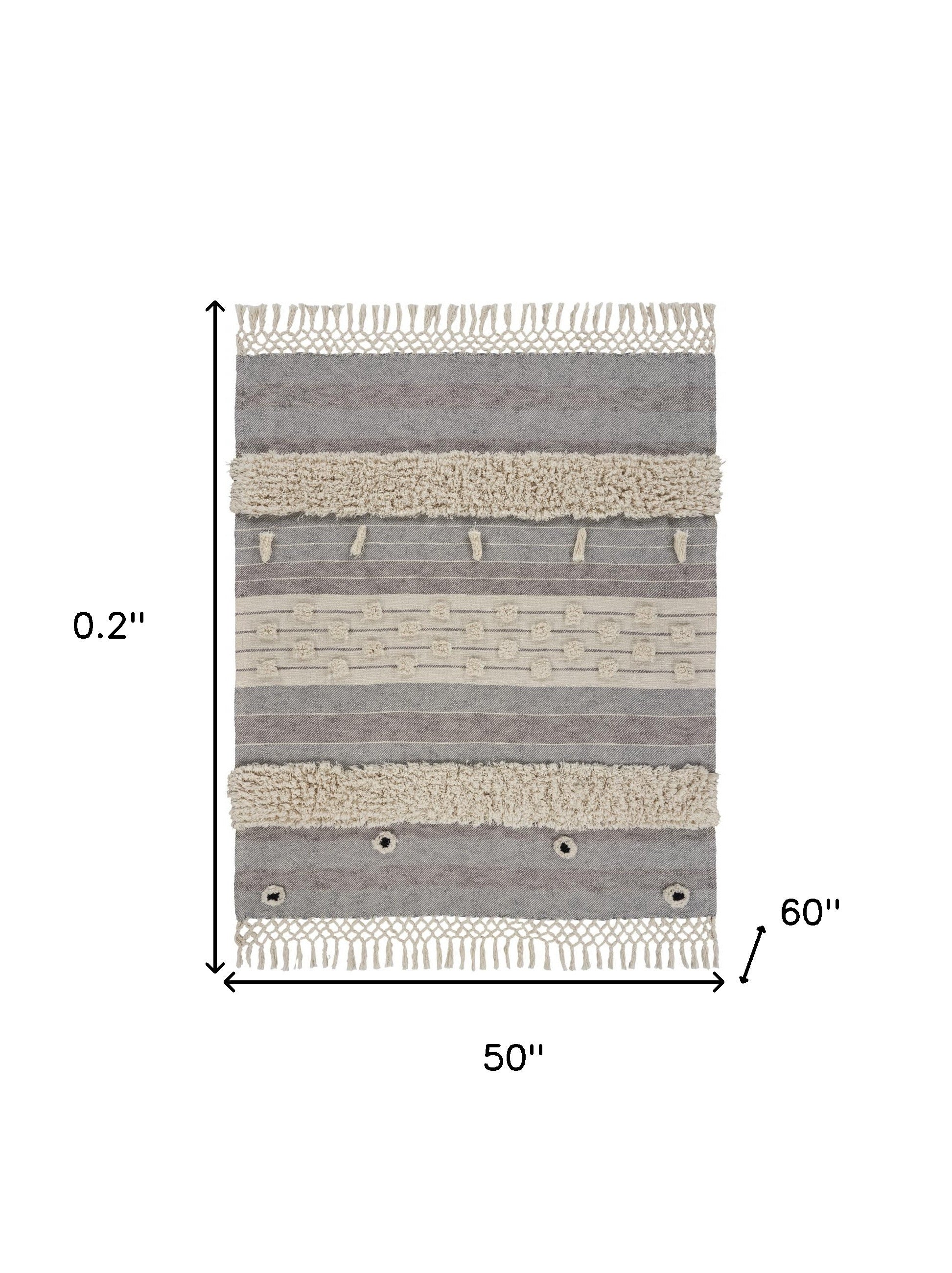 Gray Woven Cotton Striped Throw Blanket Default Title