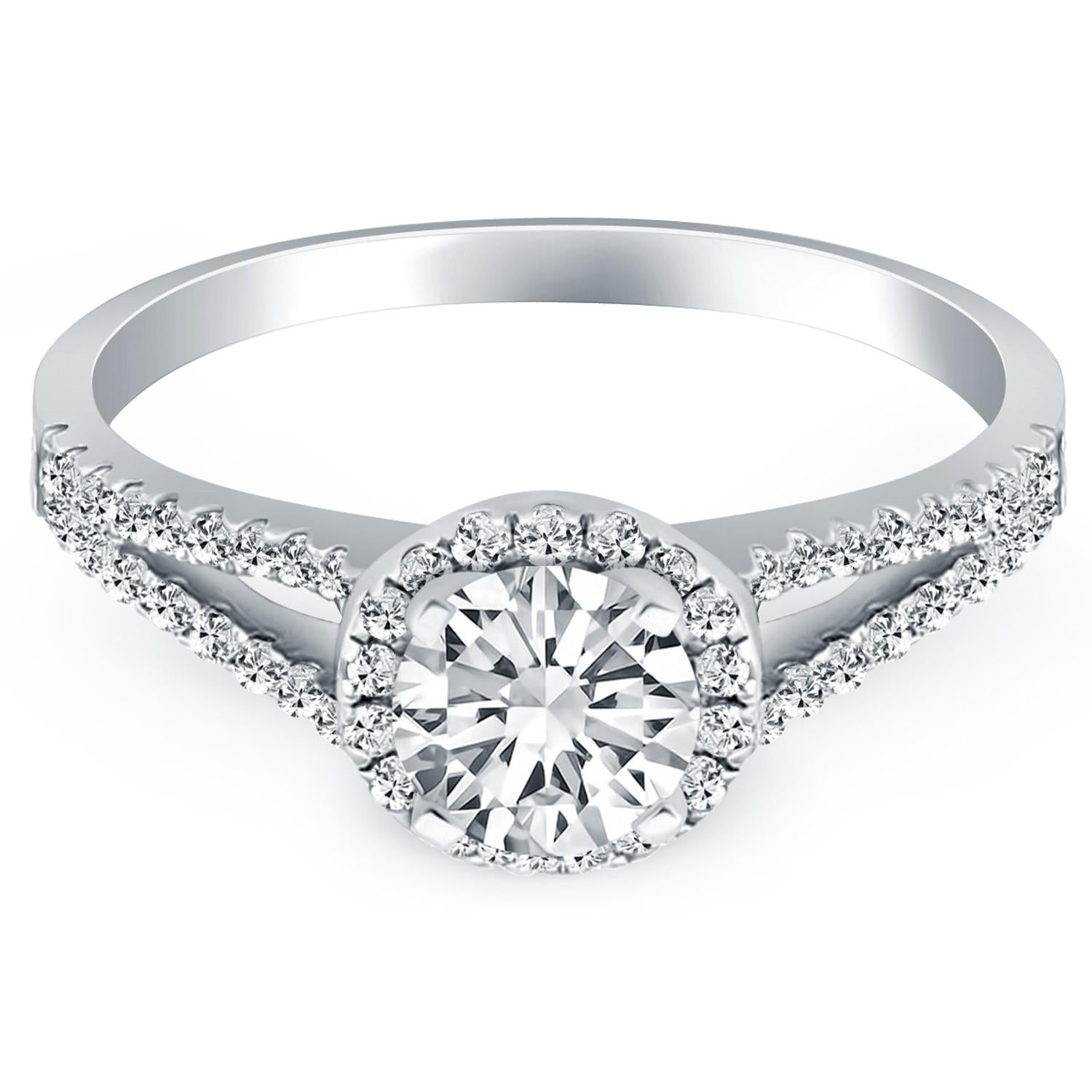 14k White Gold Diamond Halo Split Shank Engagement Ring - Bỏ qua nội dung