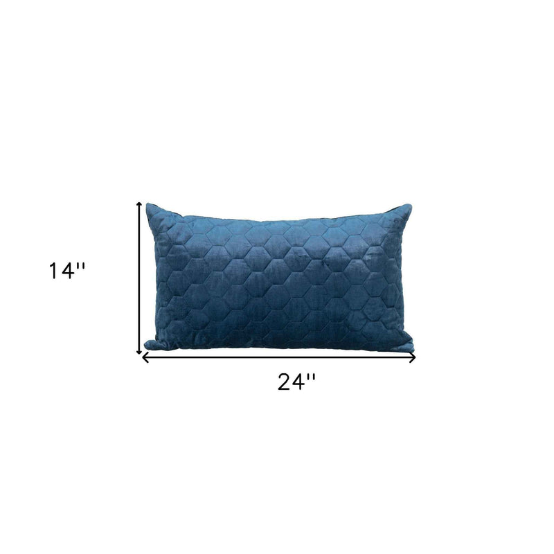 Add some artistry to your existing décor with the Navy Blue Tufted Velvet Quilted Lumbar Throw Pillow. Crafted from a combination of soft cotton and velvet, the cushion has a rather cozy and lush exterior with a quilted geometric pattern that’s surrounds the frontal part of the pillow. It's lightweight nature makes it ideal to toss around from your favorite sofa to your extravagant bed. A hidden flap creatively conceals a zipper provided for easy removal and insertion. Enhance your interior by binging a little character to your home with this functional and luxuriously styled throw pillow. 14" x 24" x 4"
