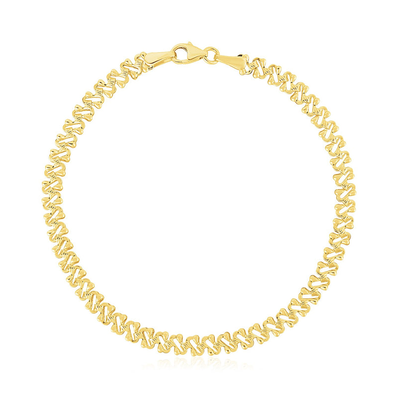14k Yellow Gold High Polish Textured Fancy Chain Bracelet (4mm) 7''