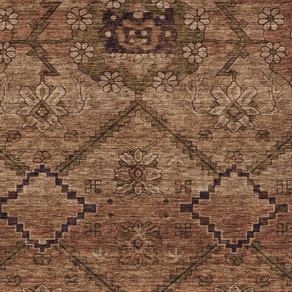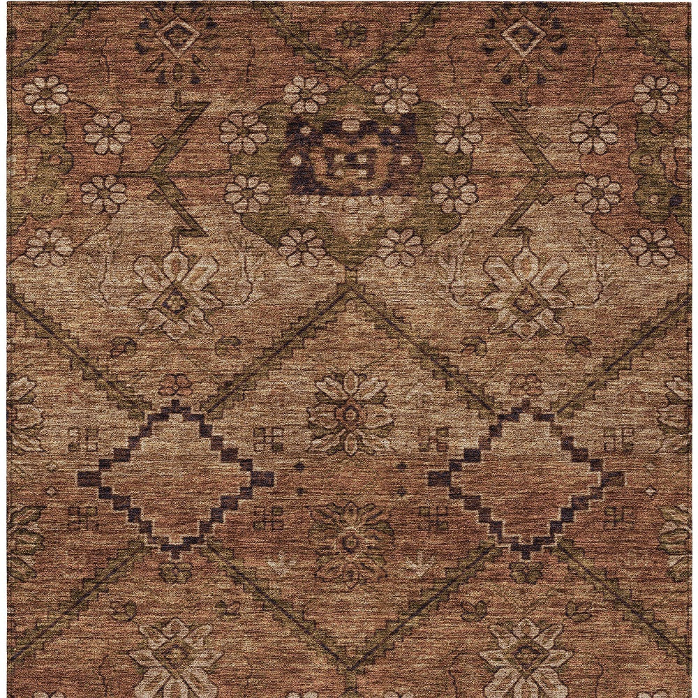 10' X 14' Orange Copper And Brown Floral Washable Indoor Outdoor Area Rug
