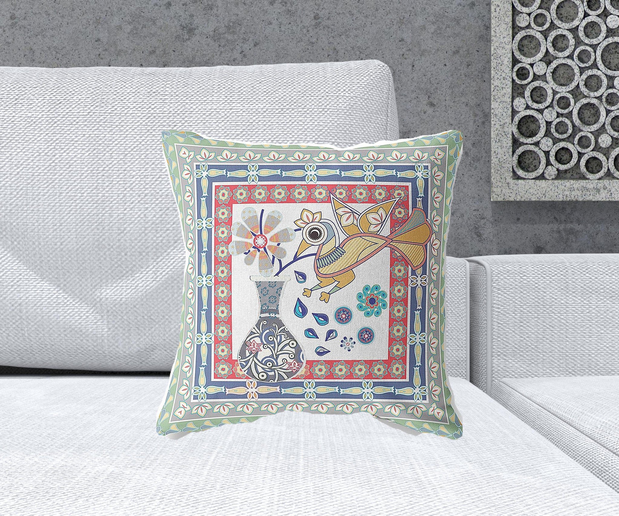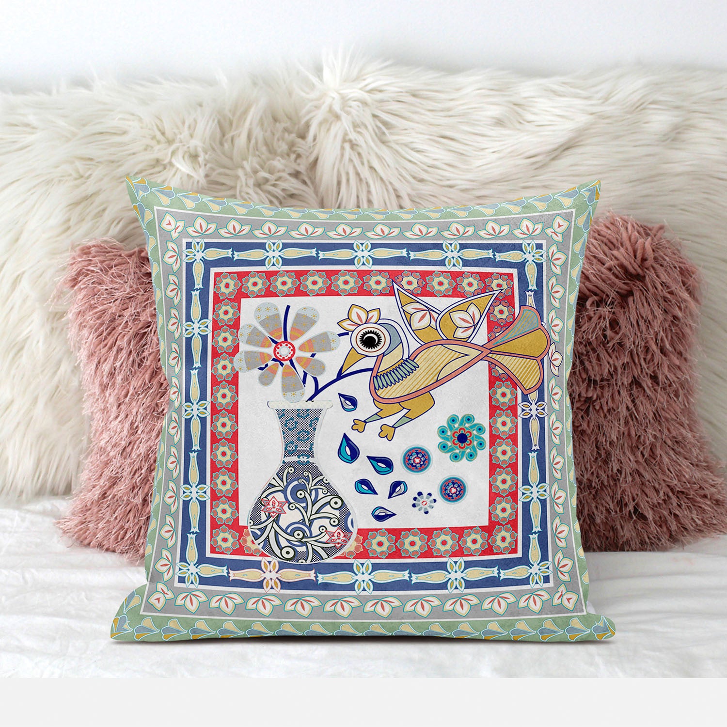 18" x 18" Red Bird Blown Seam Floral Indoor Outdoor Throw Pillow