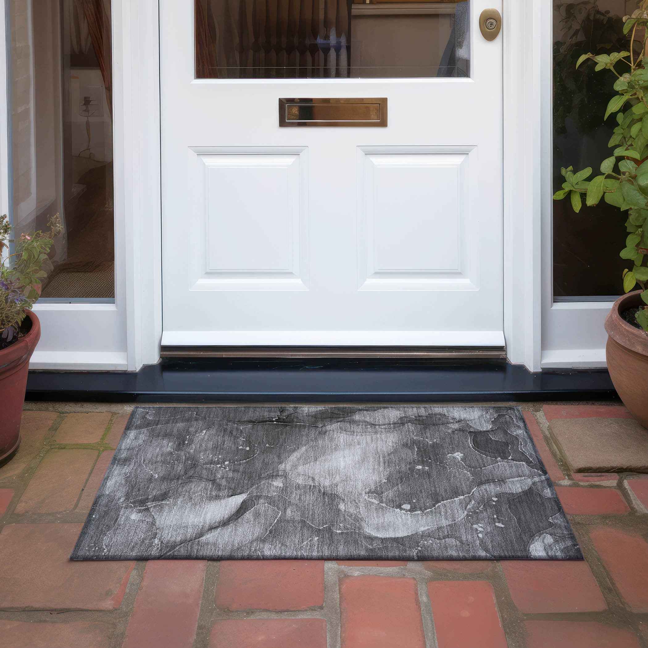2' X 3' Gray Abstract Washable Non Skid Indoor Outdoor Area Rug