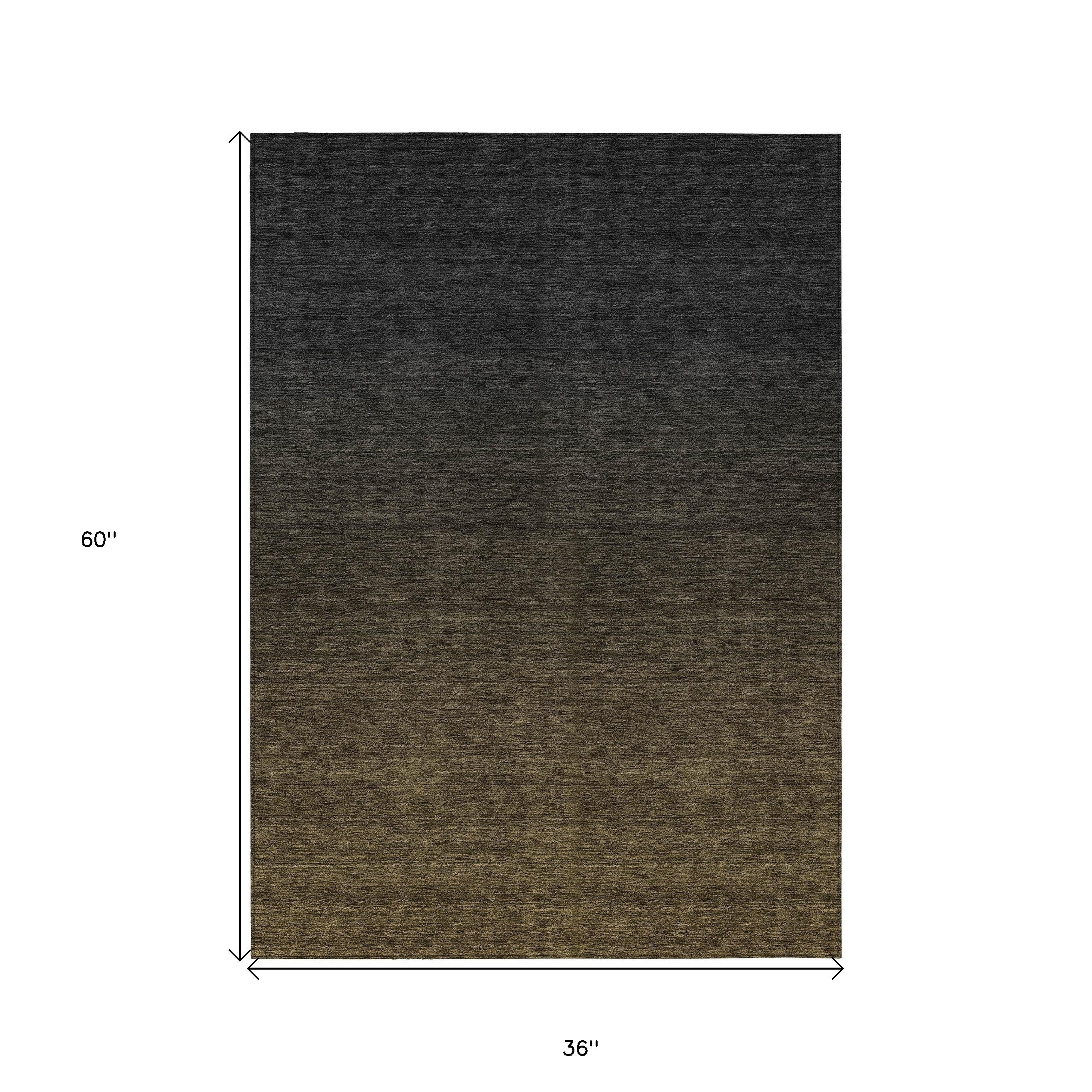 3' X 5' Gray And Brown Abstract Washable Indoor Outdoor Area Rug