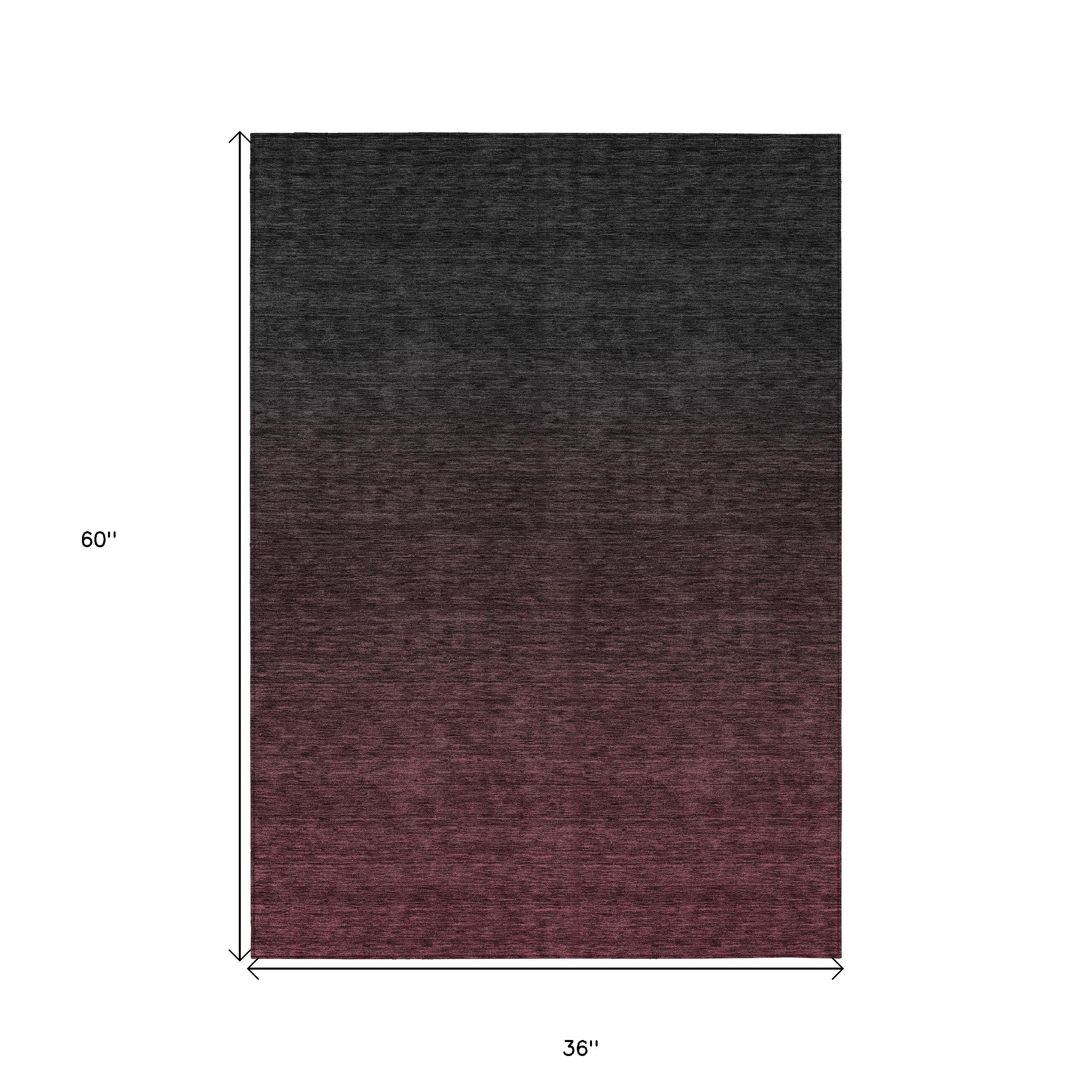 3' X 5' Merlot And Charcoal Abstract Washable Indoor Outdoor Area Rug