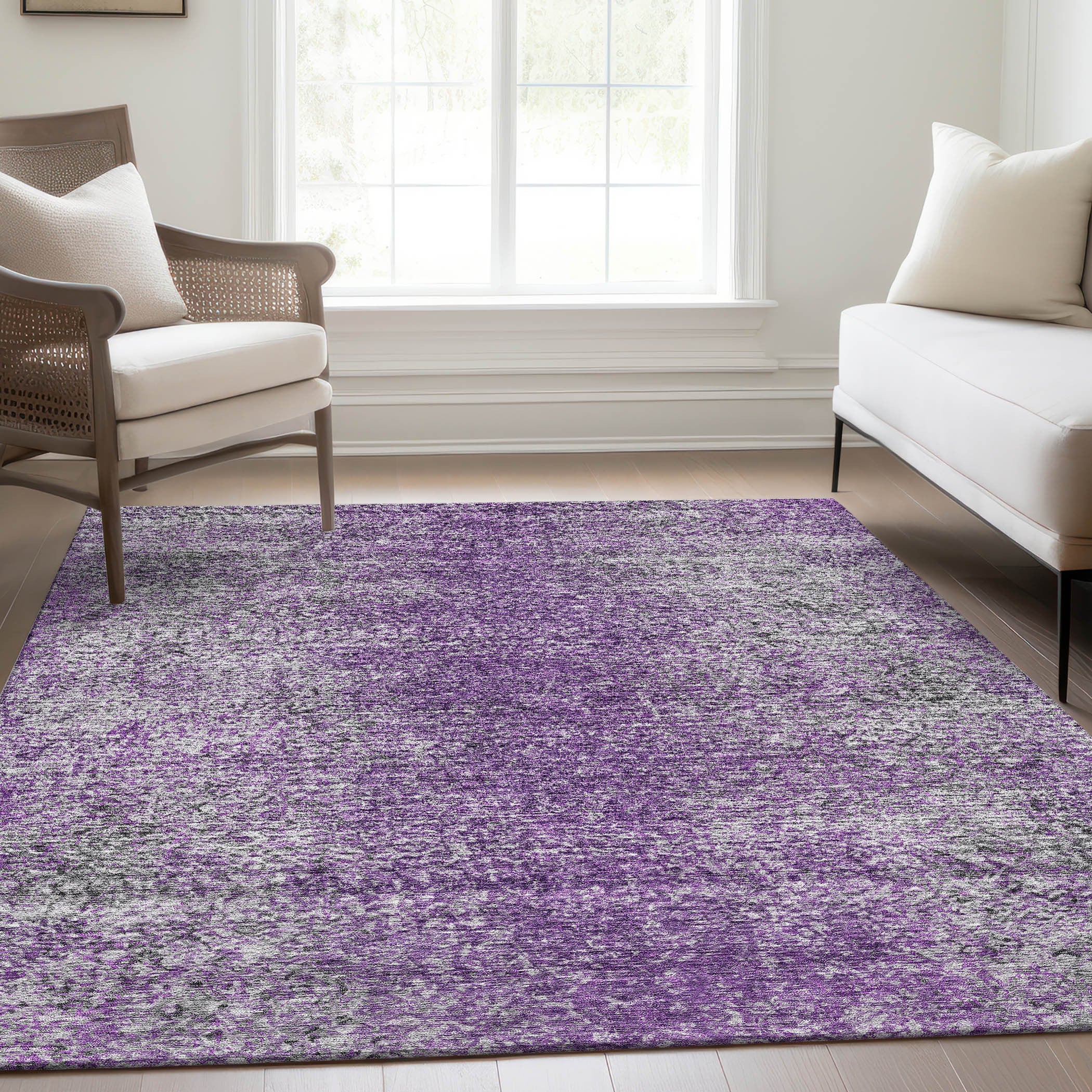 3' X 5' Plum Purple And Silver Oriental Washable Indoor Outdoor Area Rug