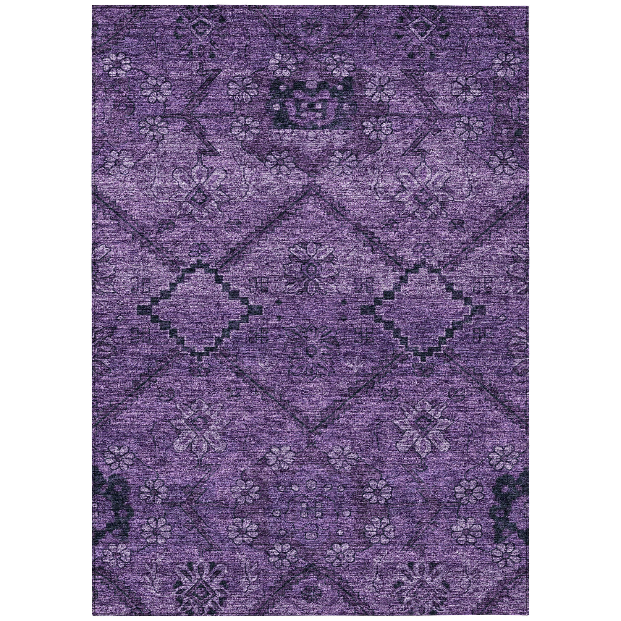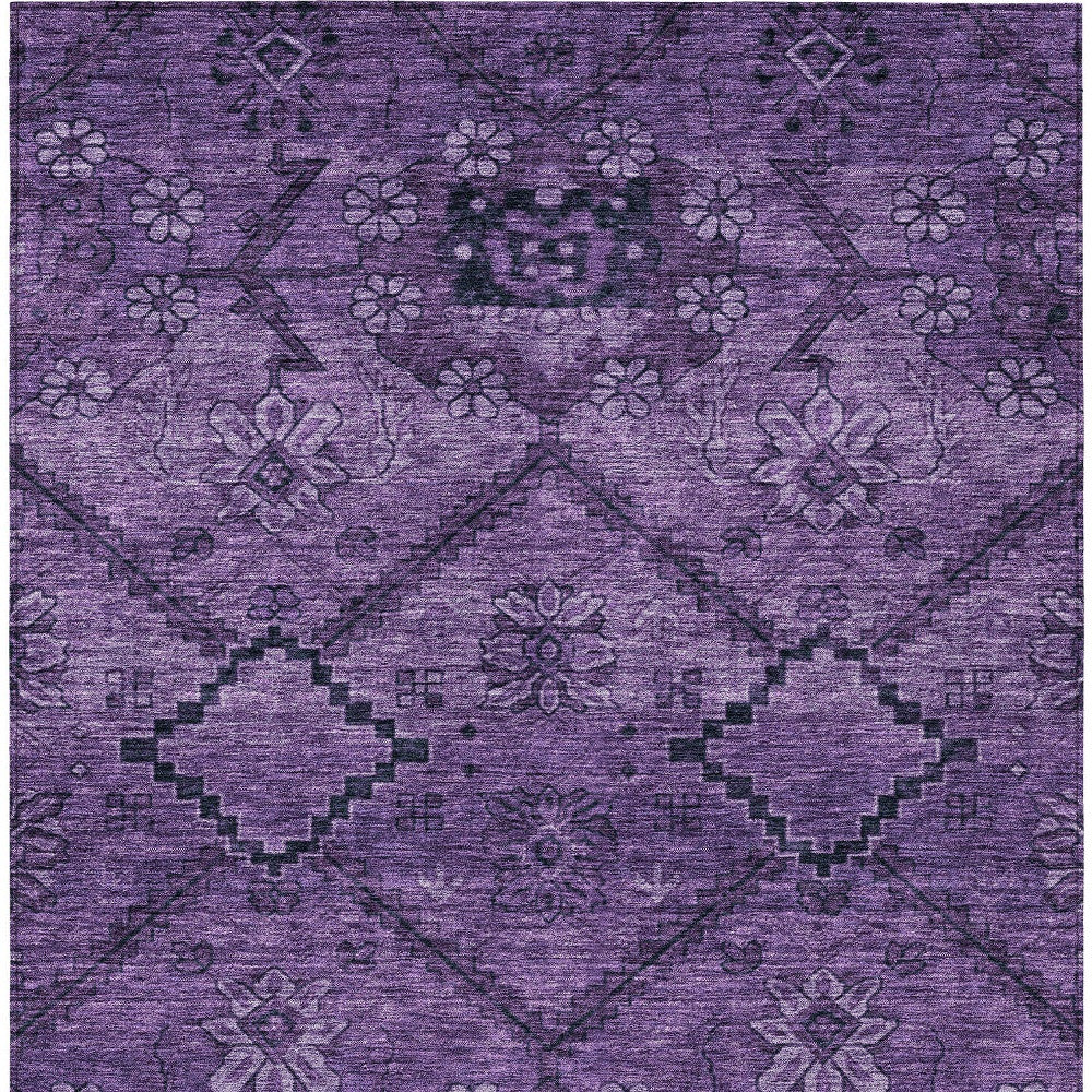 5' X 8' Eggplant Purple And Plum Floral Washable Indoor Outdoor Area Rug