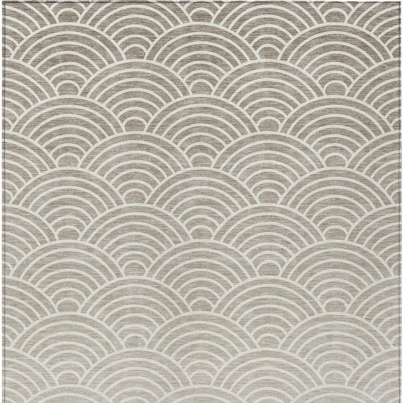5' X 8' Ivory Beige And Brown Geometric Washable Indoor Outdoor Area Rug