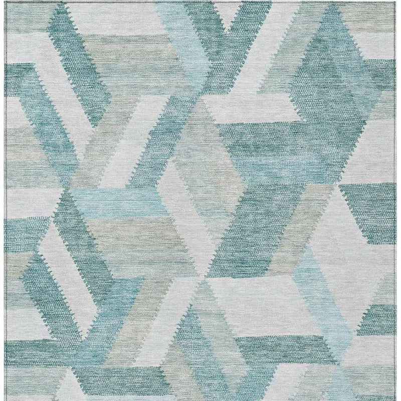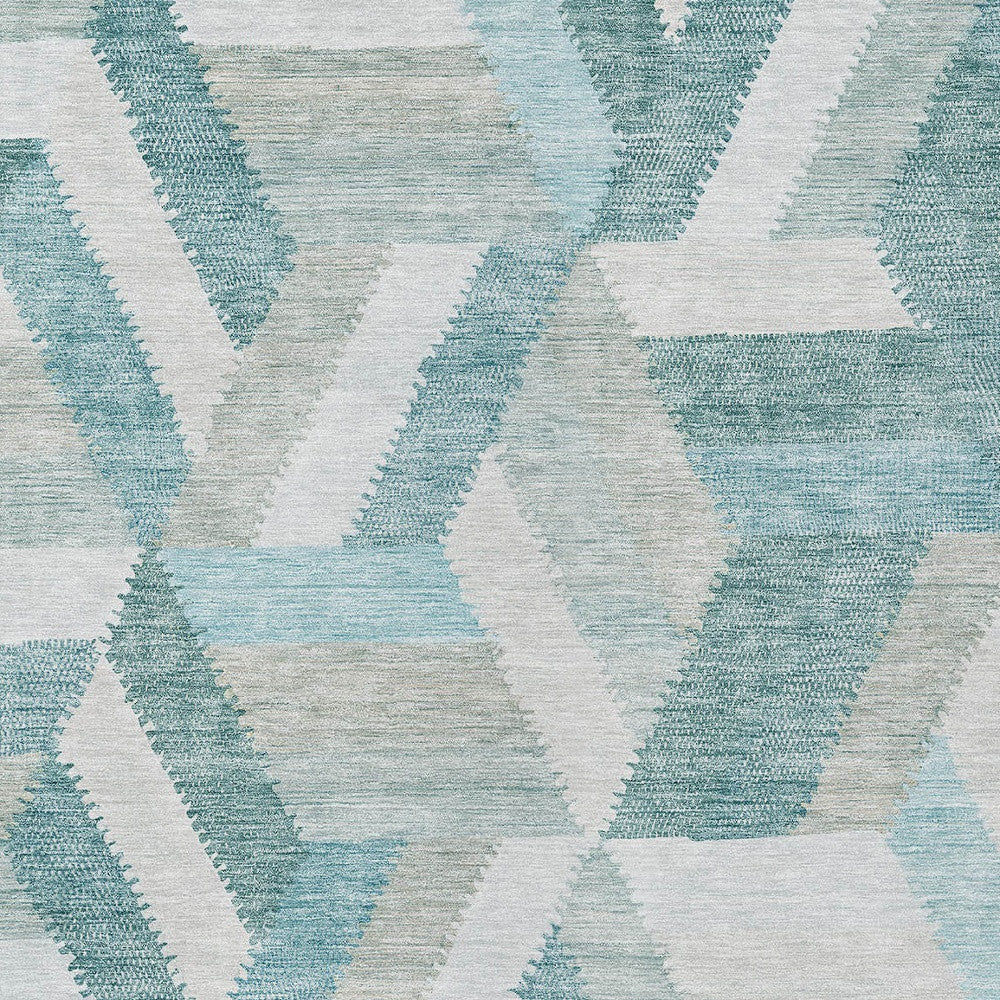 5' X 8' Teal Blue Geometric Washable Indoor Outdoor Area Rug
