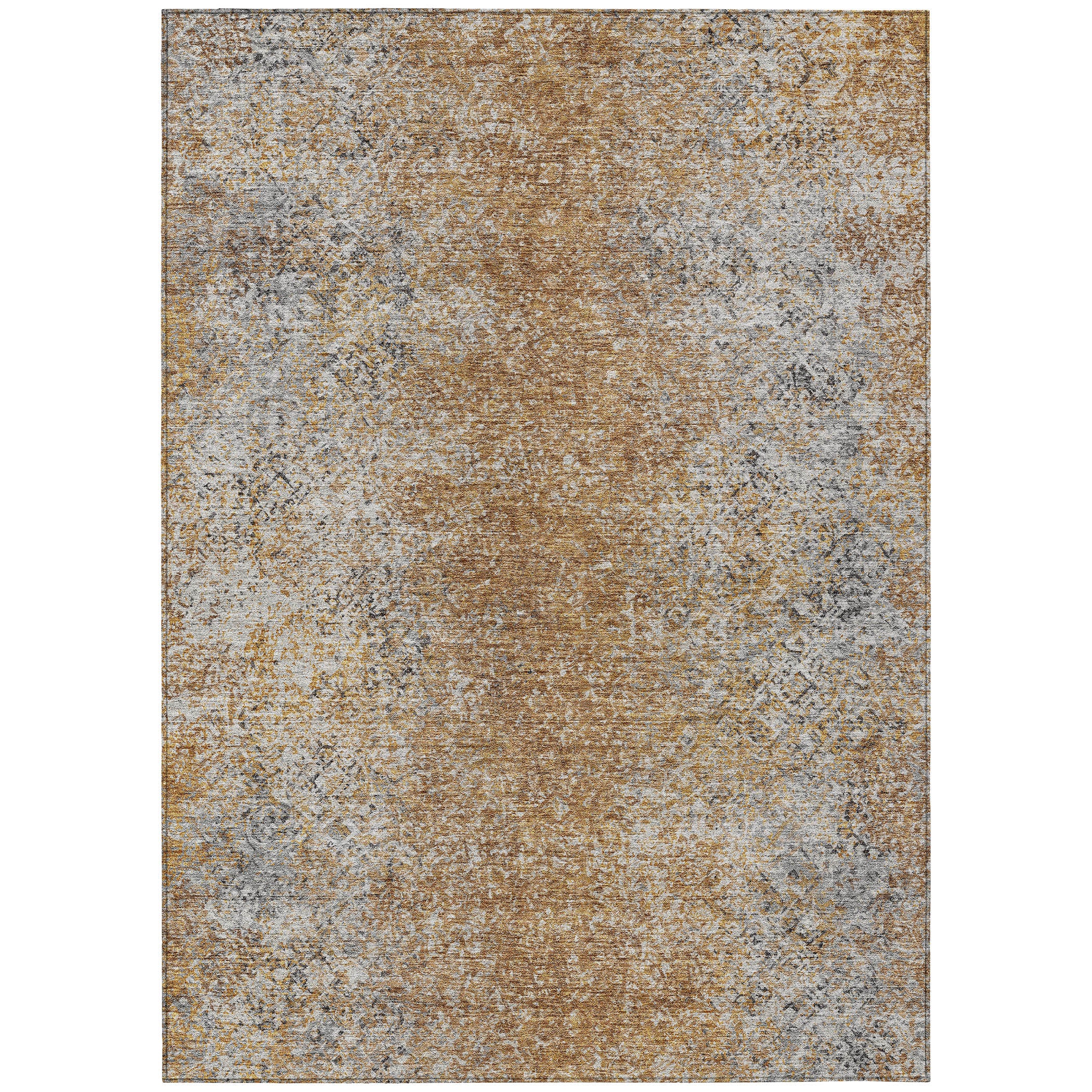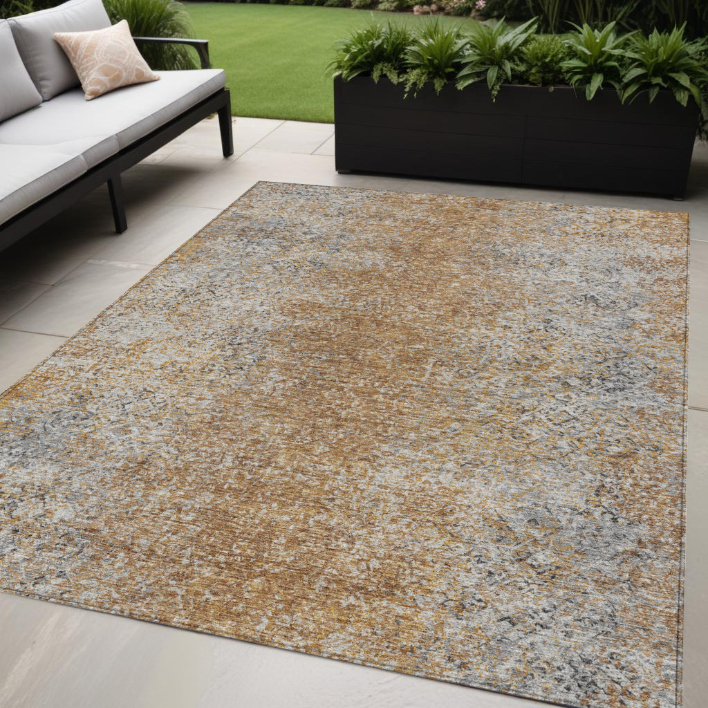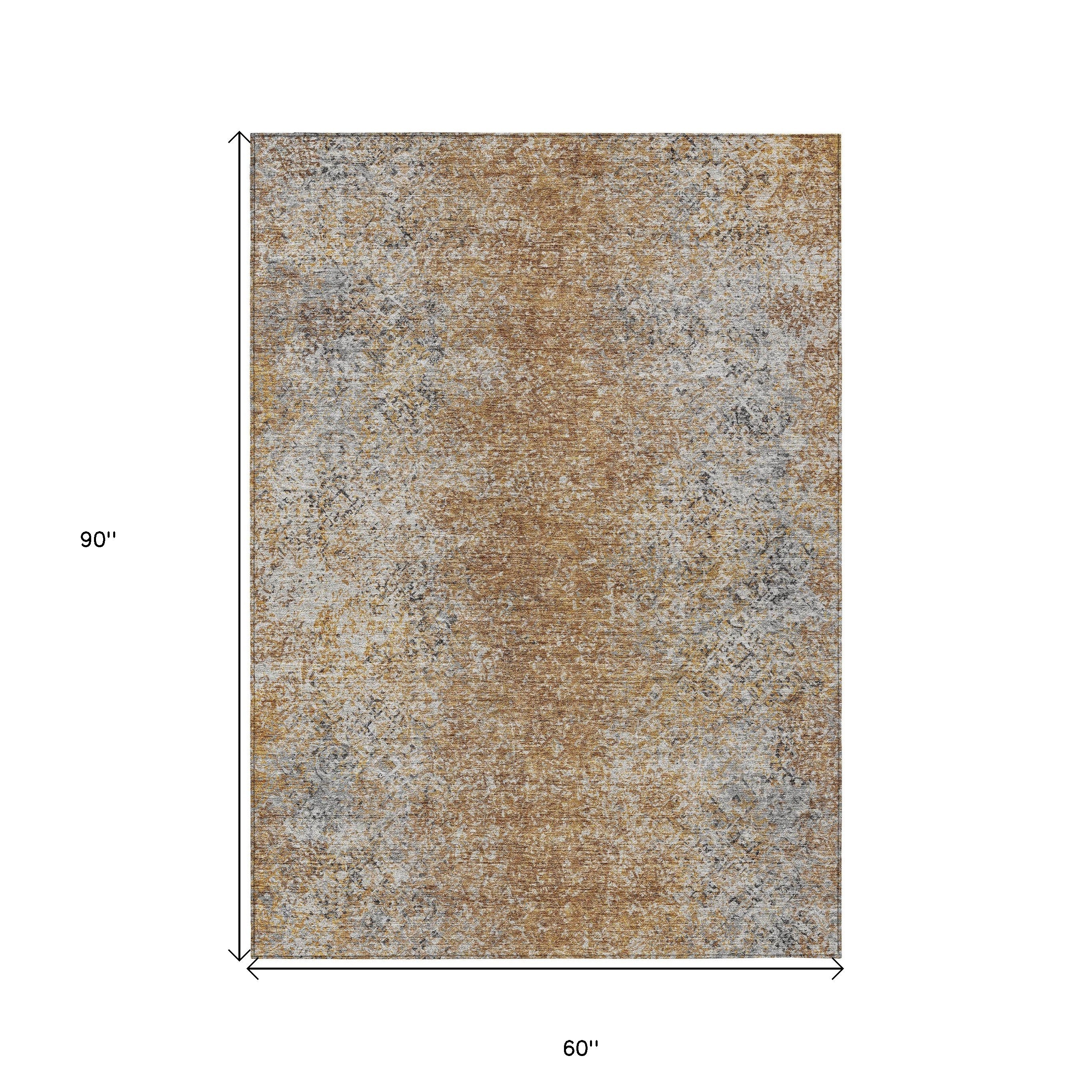 5' X 8' Terra Cotta Silver And Charcoal Oriental Washable Indoor Outdoor Area Rug