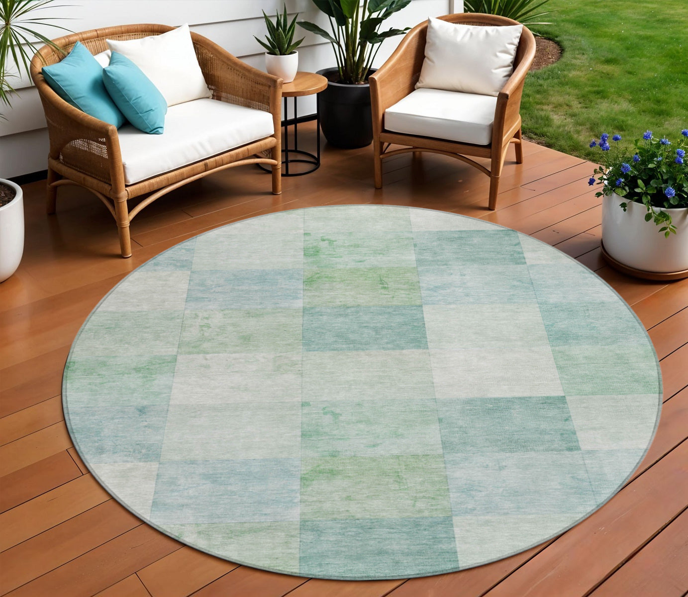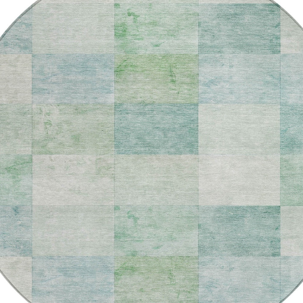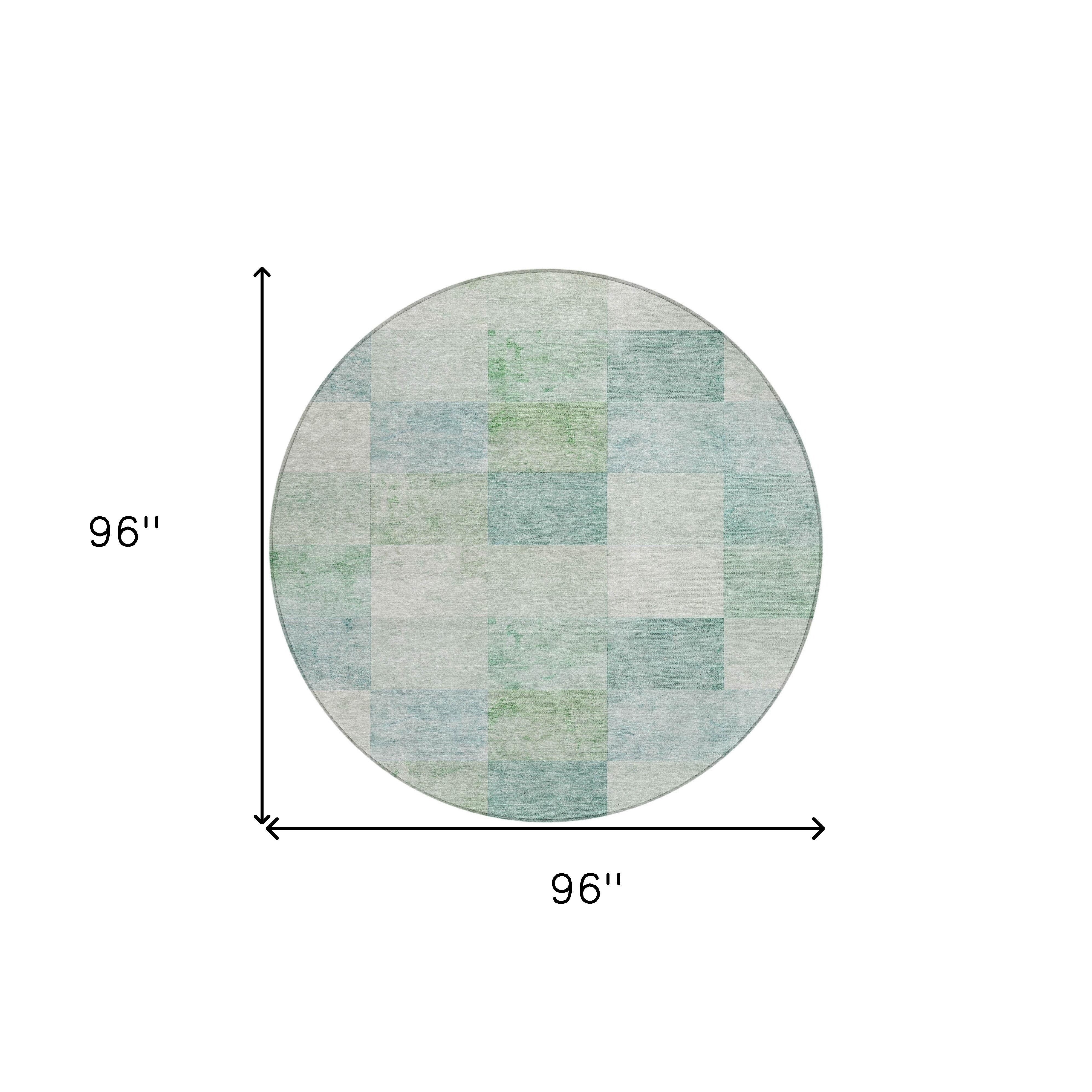 8' Blue Round Geometric Washable Indoor Outdoor Area Rug