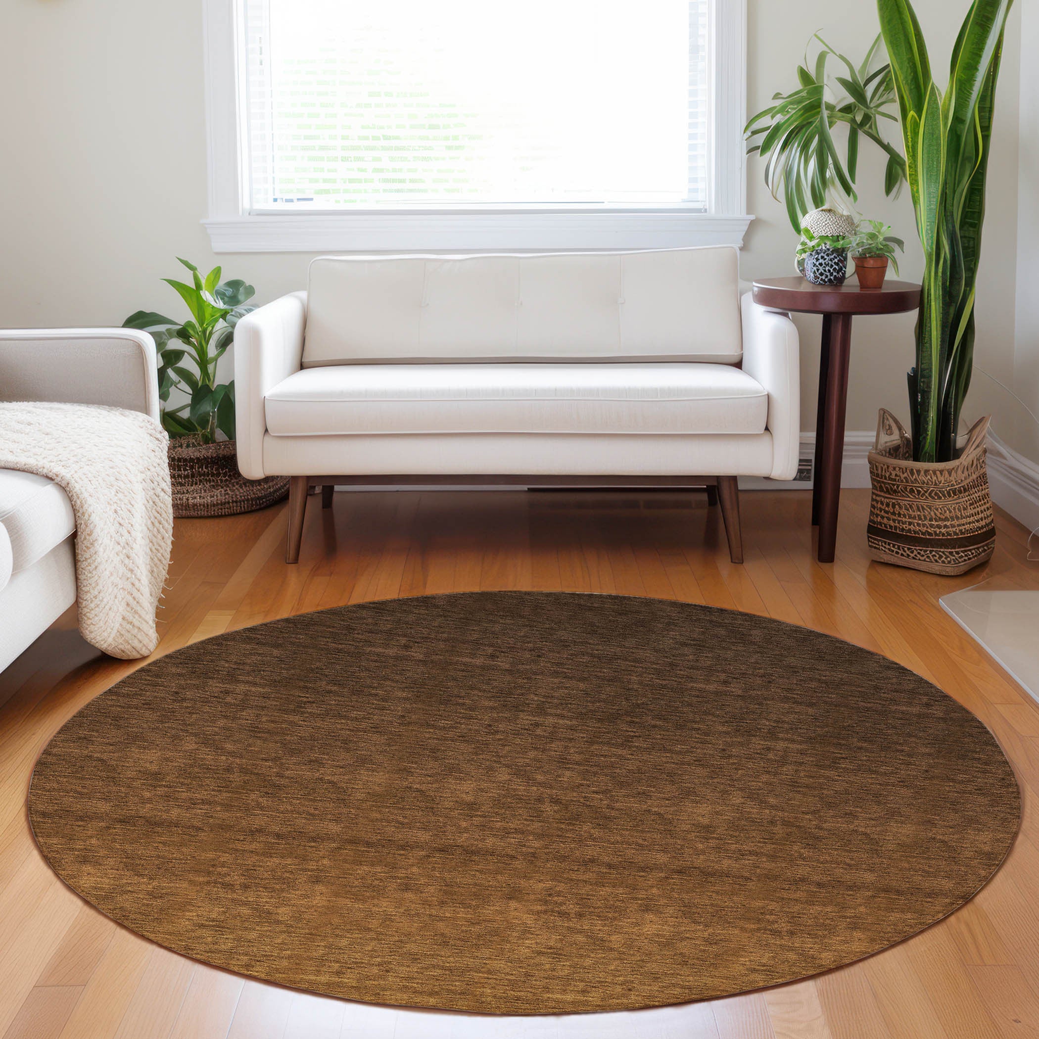 8' Chocolate And Brown Round Ombre Washable Indoor Outdoor Area Rug