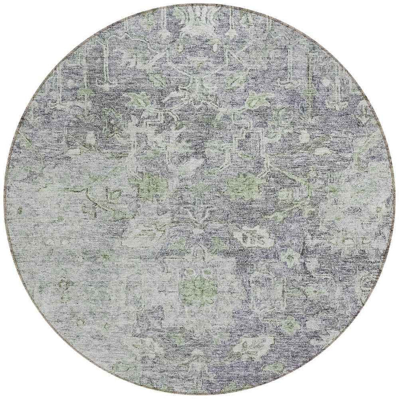 8' Plum Purple And Olive Green Round Oriental Washable Indoor Outdoor Area Rug