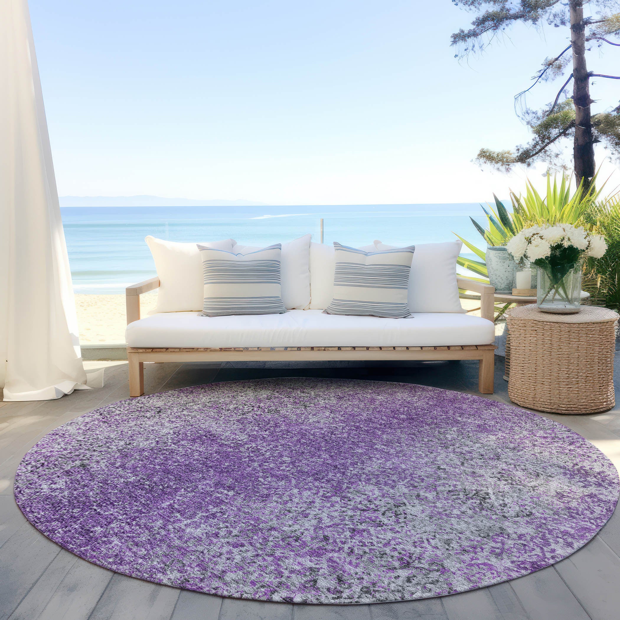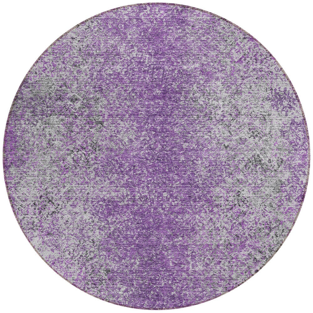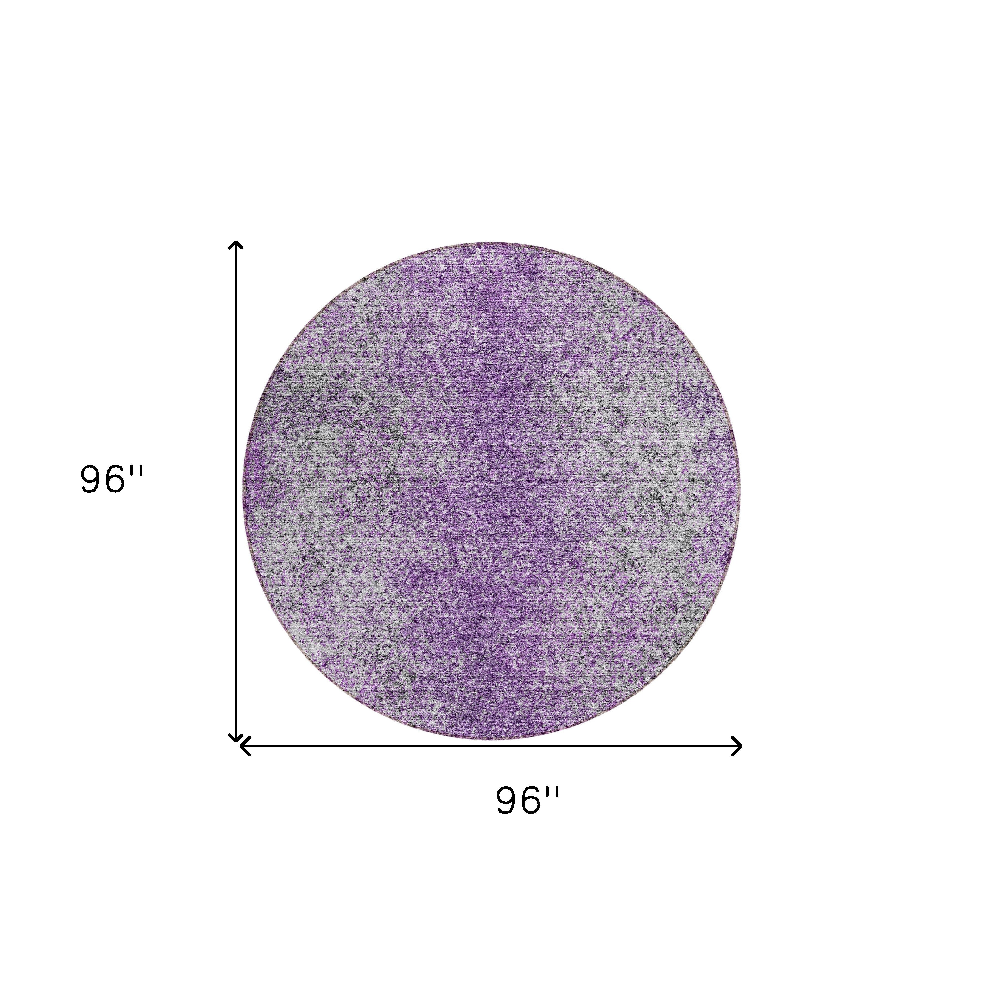 8' Plum Purple And Silver Round Oriental Washable Indoor Outdoor Area Rug