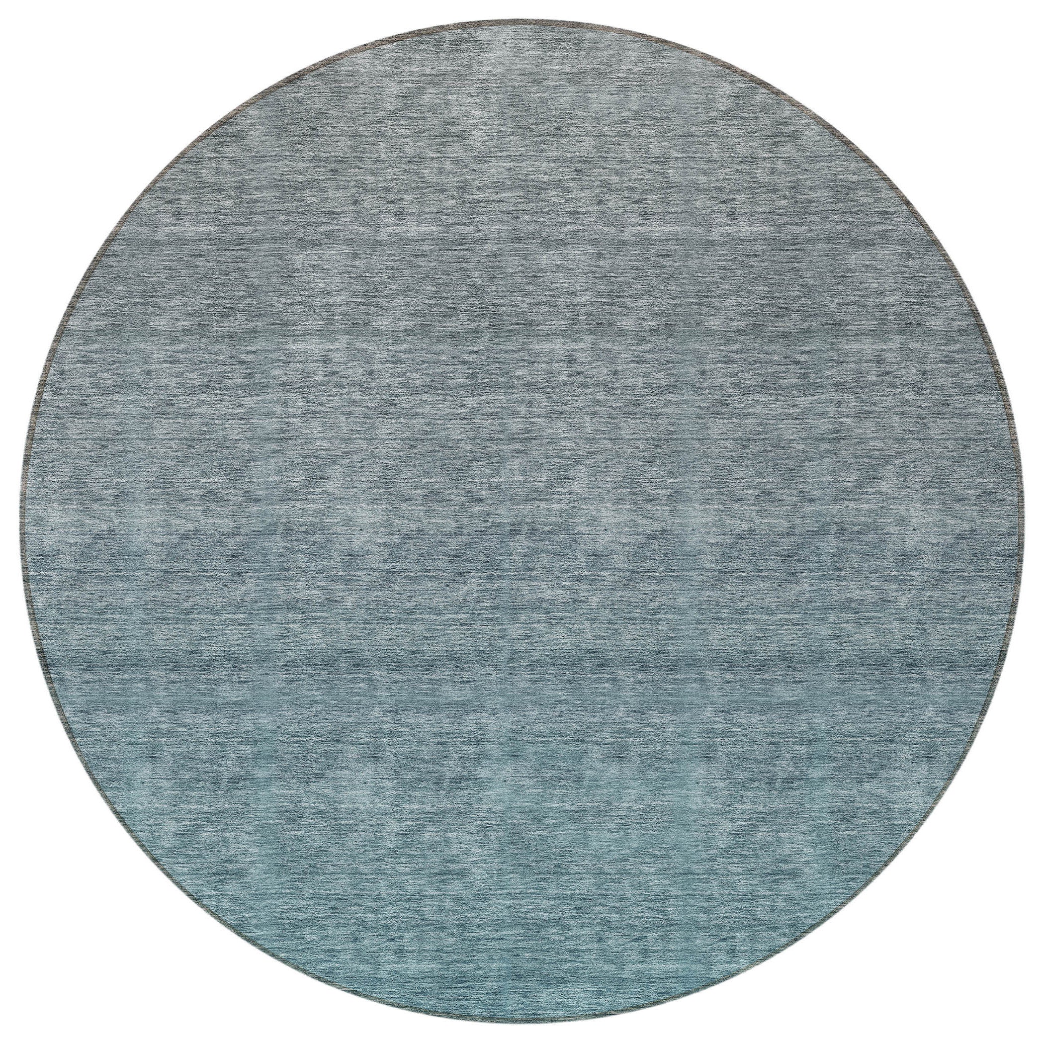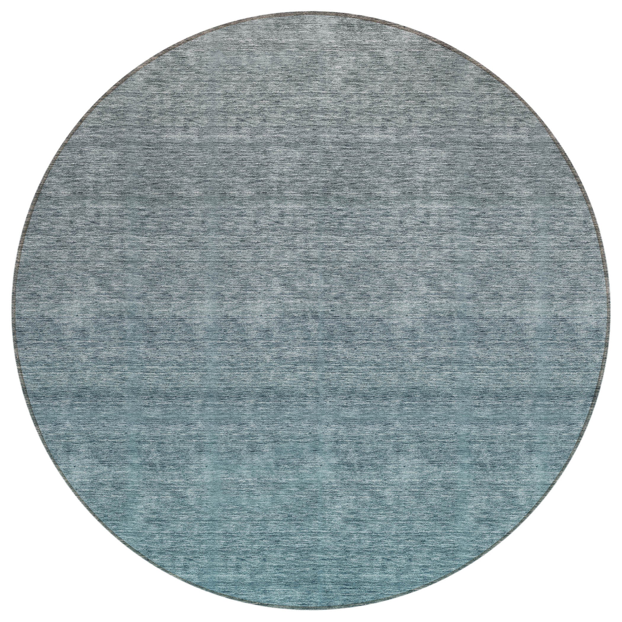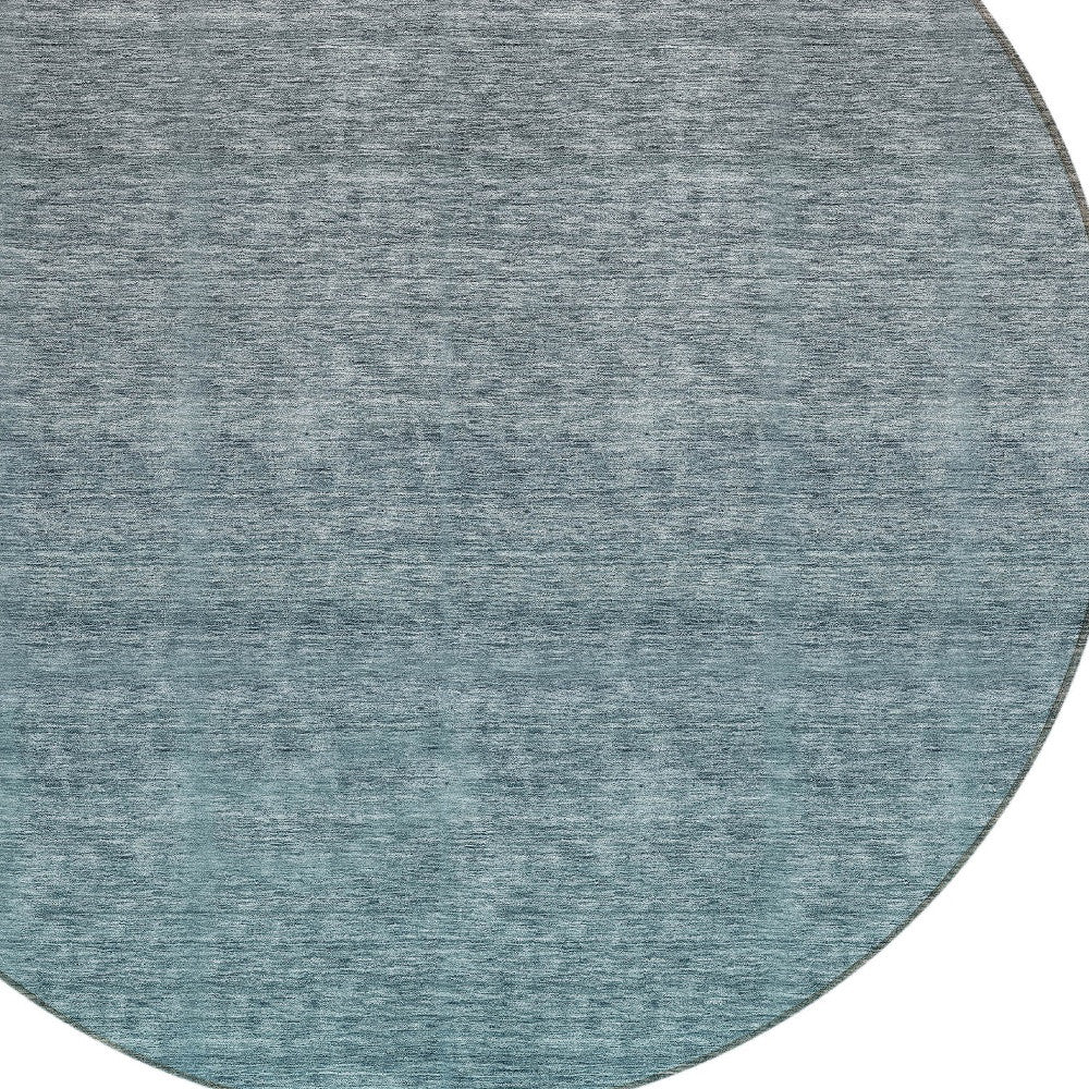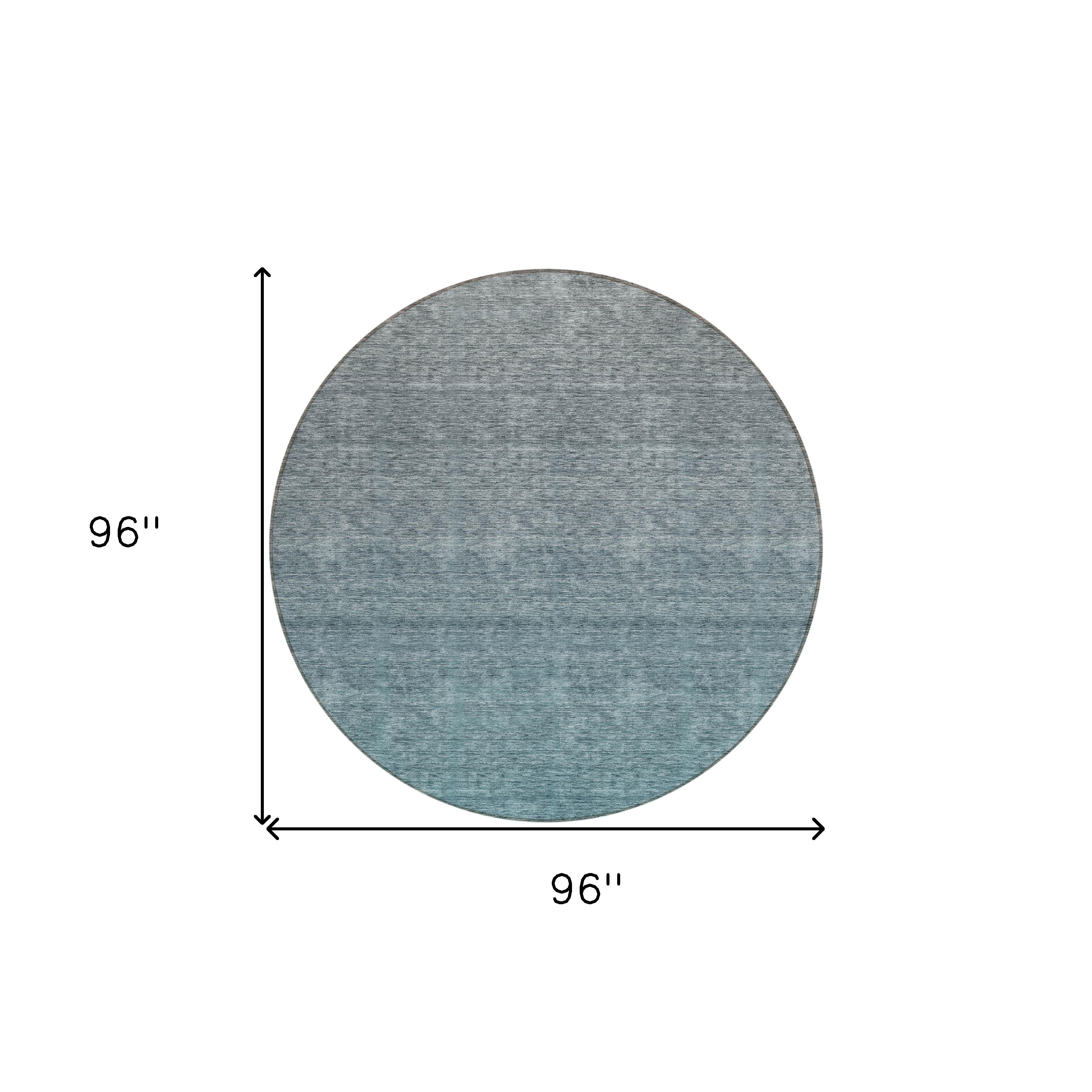 8' Teal Blue Gray And Charcoal Round Ombre Washable Indoor Outdoor Area Rug
