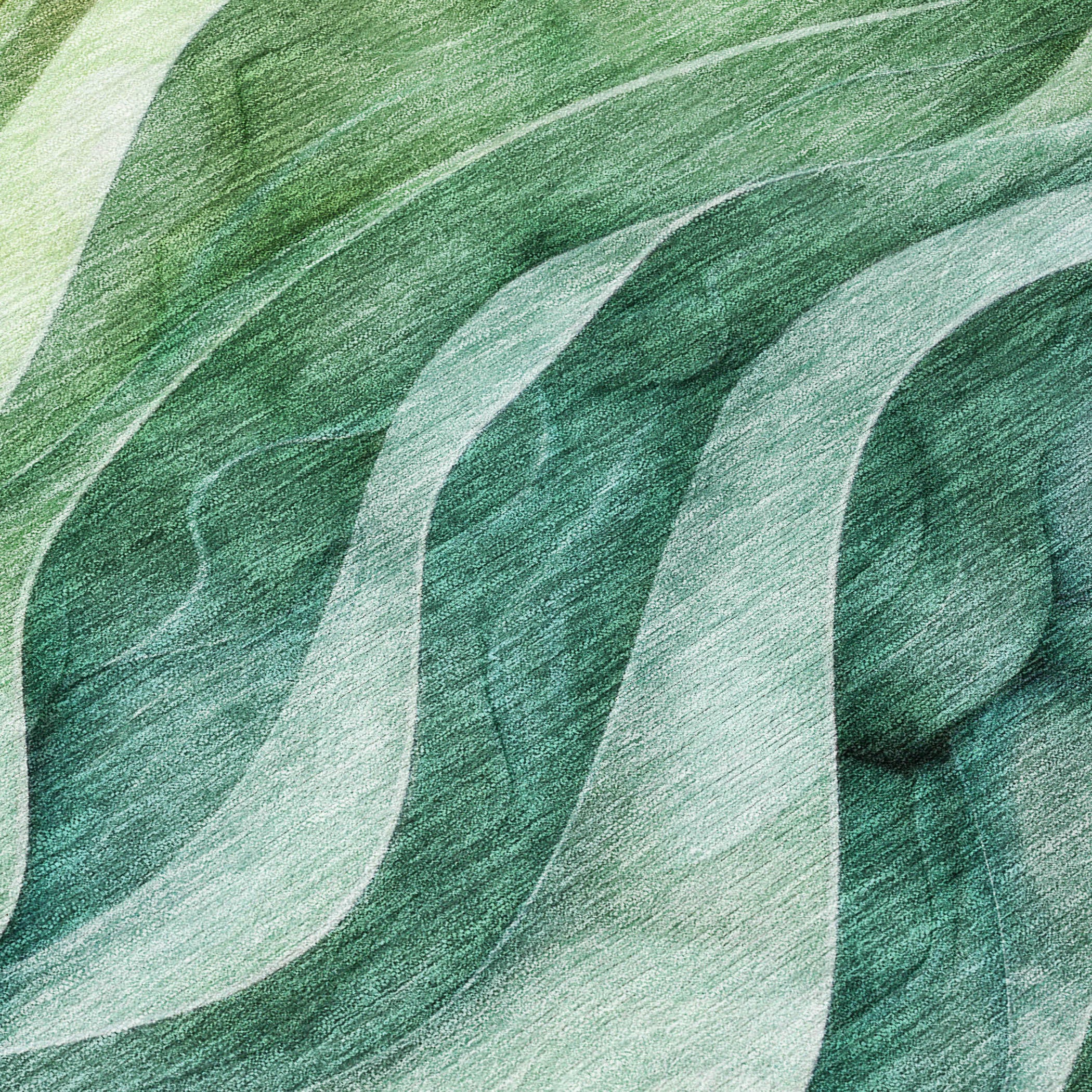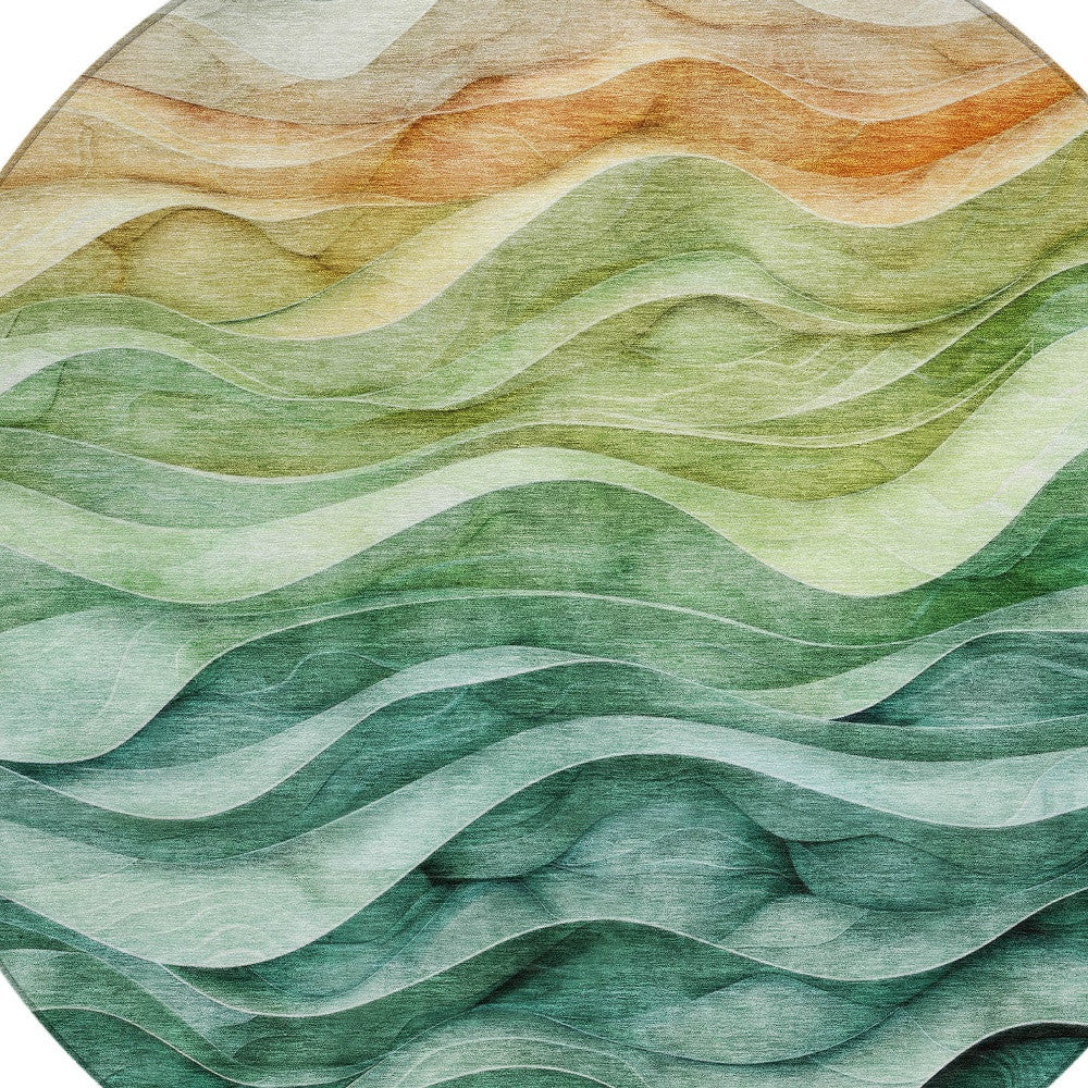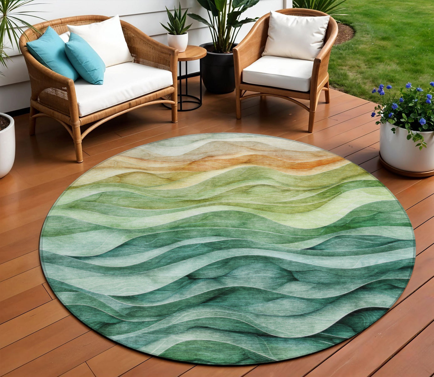 8' Teal Blue Round Abstract Washable Indoor Outdoor Area Rug