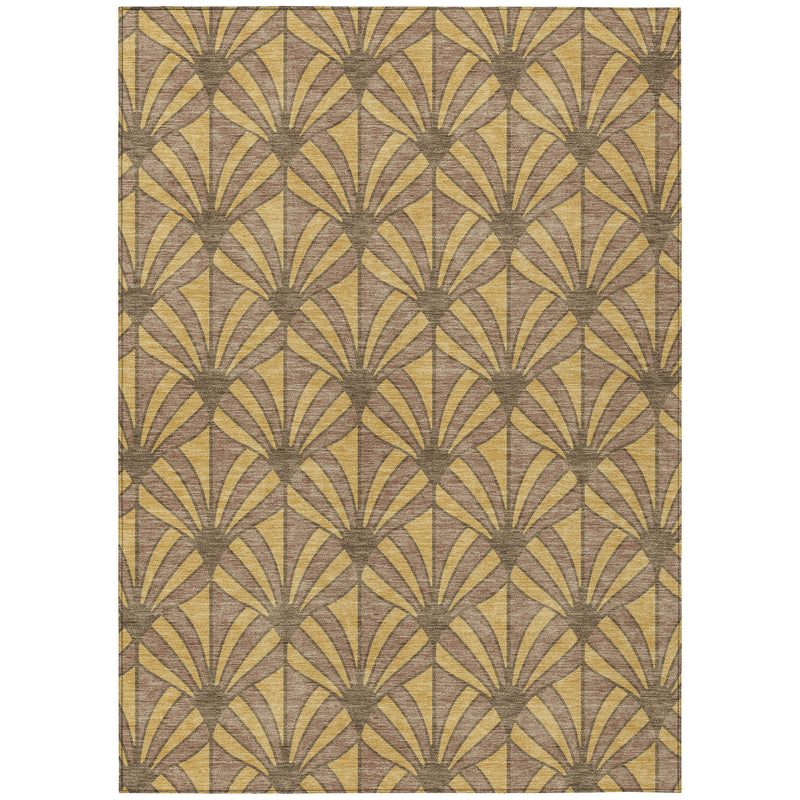 8' X 10' Gold And Brown Seashell Washable Indoor Outdoor Area Rug