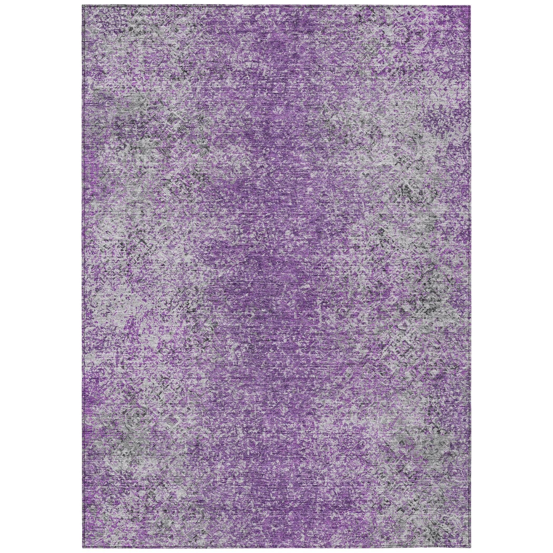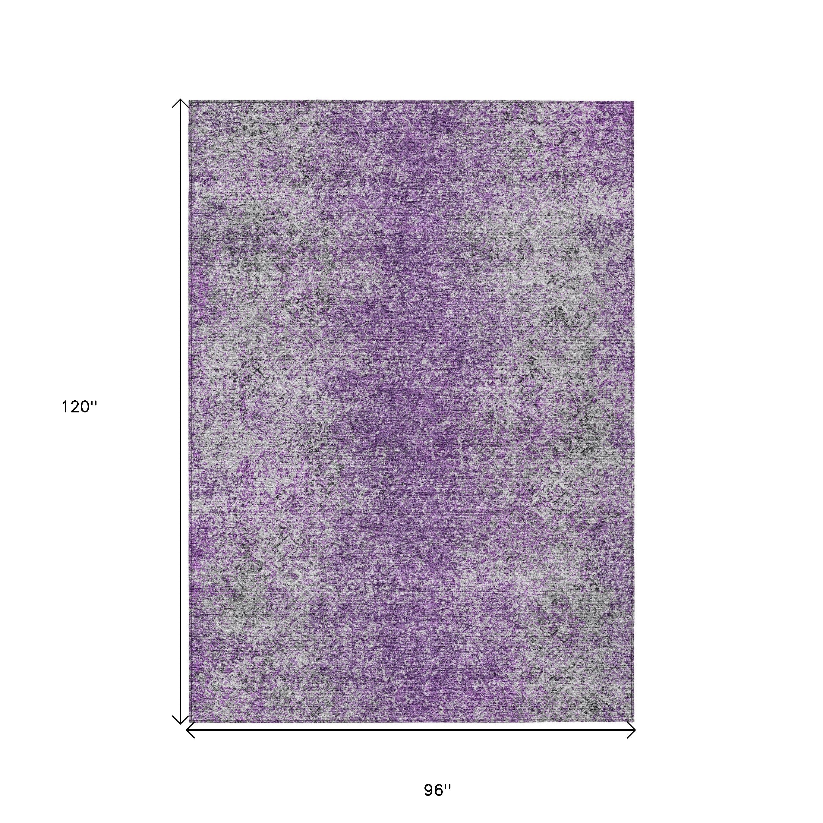8' X 10' Plum Purple And Silver Oriental Washable Indoor Outdoor Area Rug