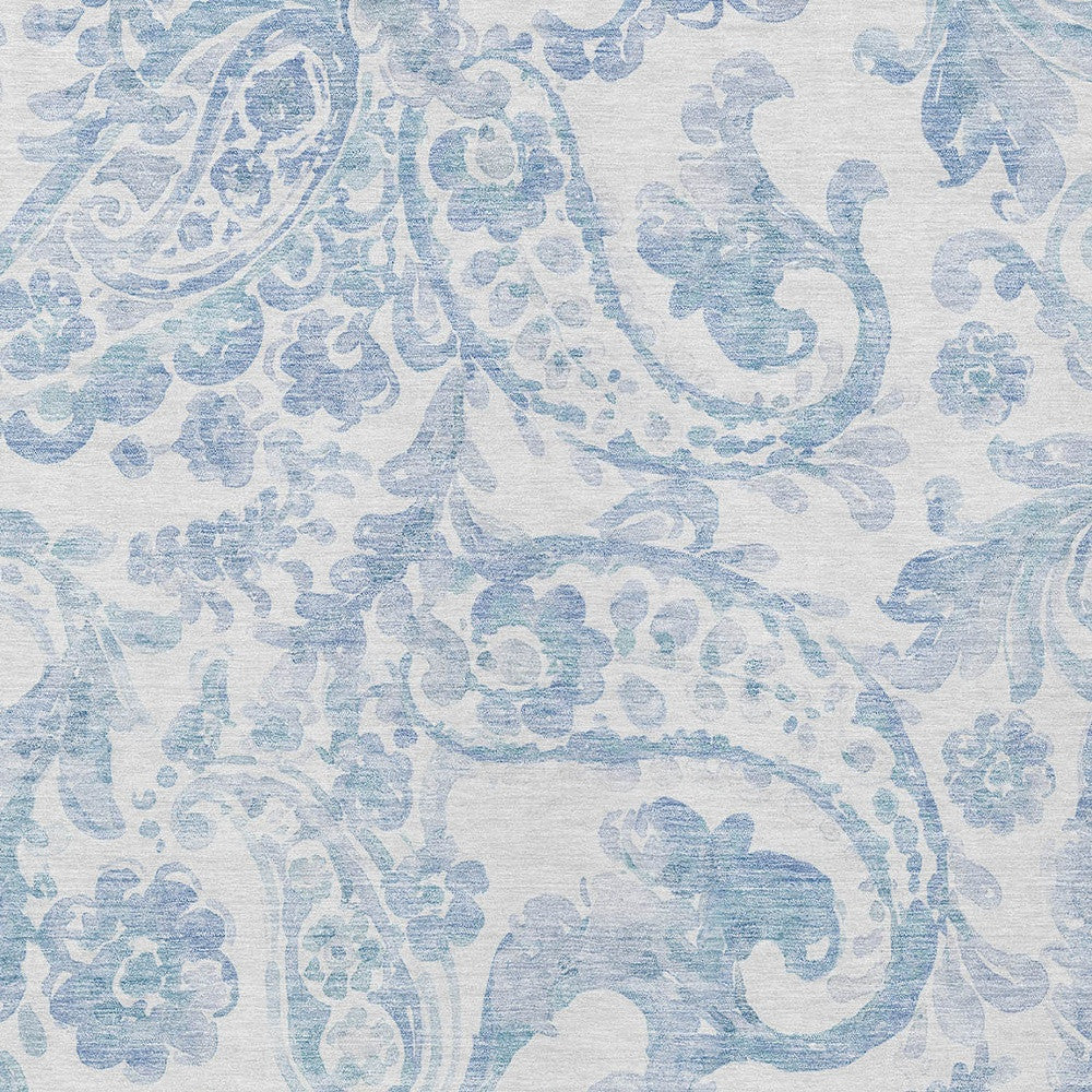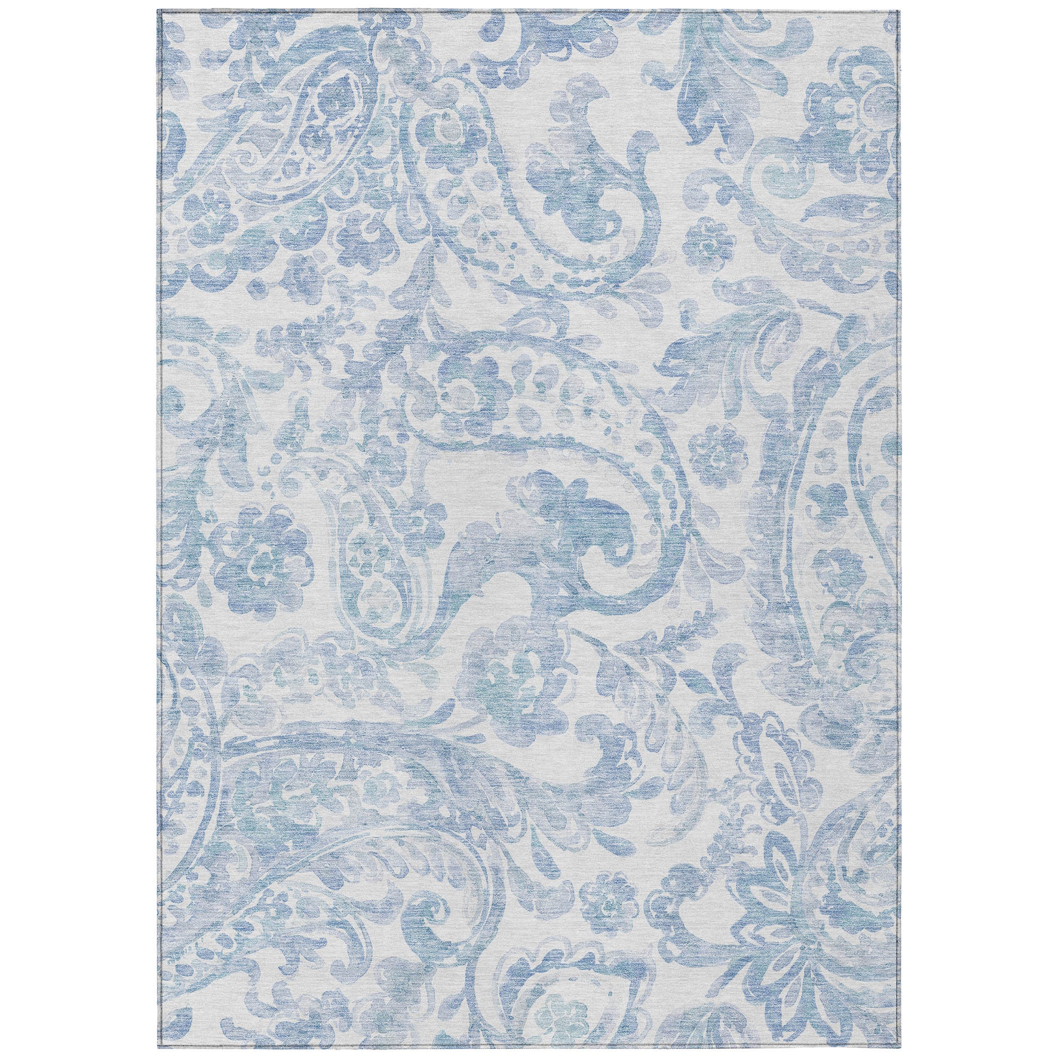 8' X 10' Sky Blue Denim Blue And Ivory Paisley Washable Indoor Outdoor Area Rug