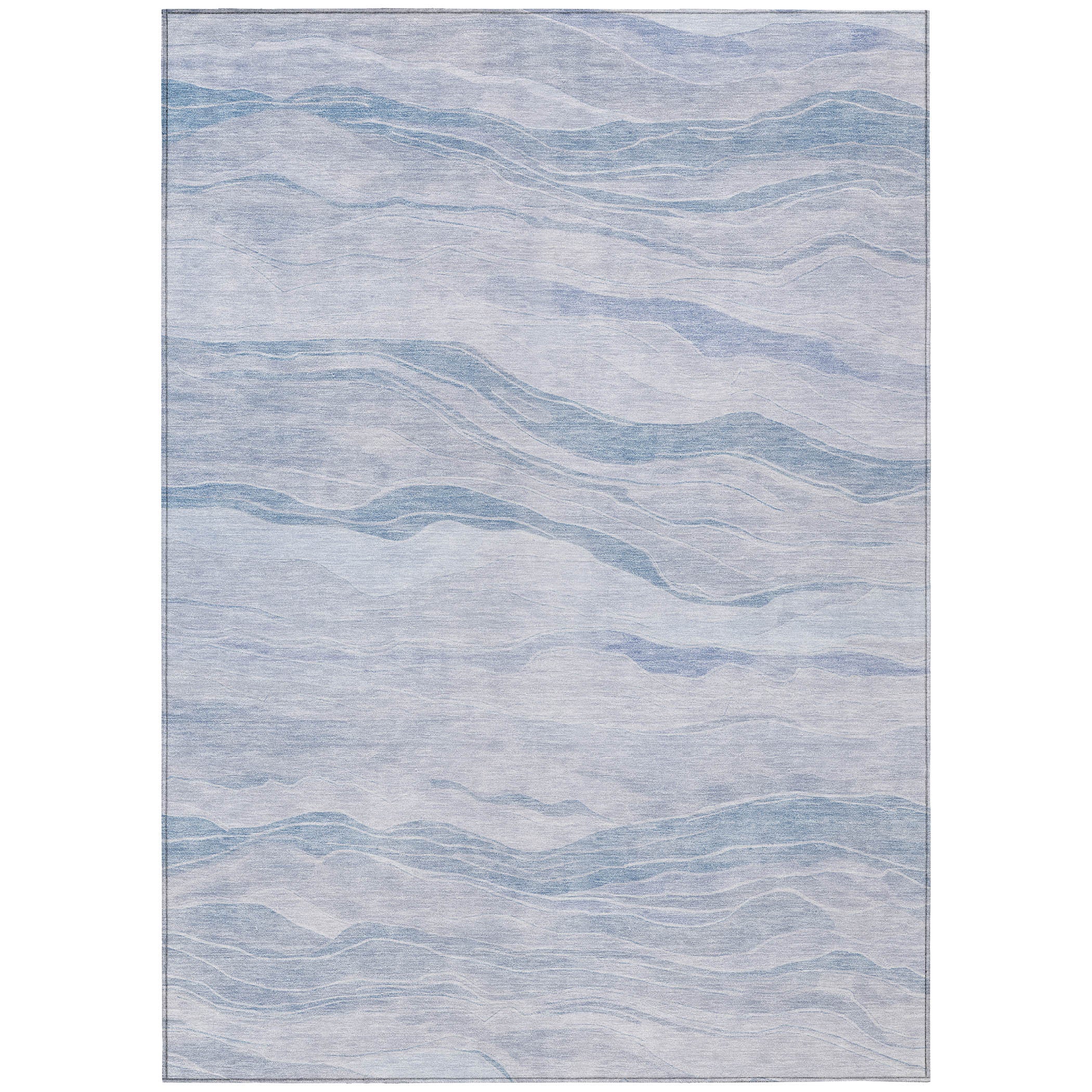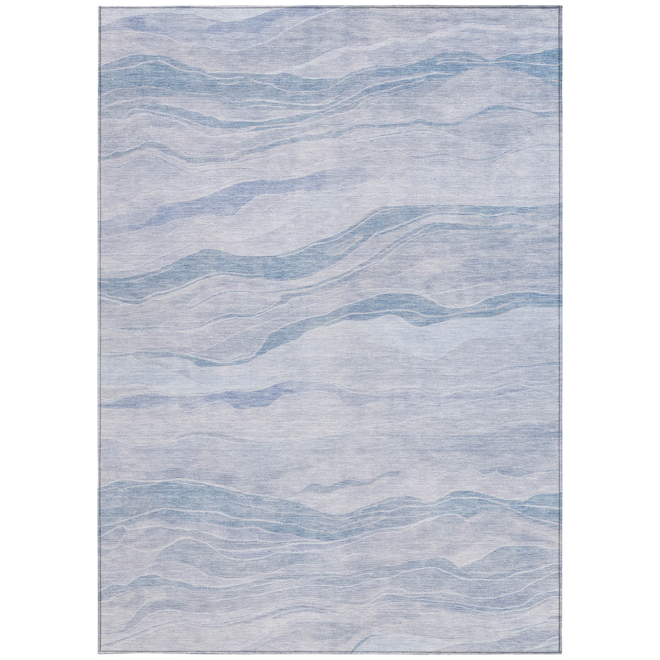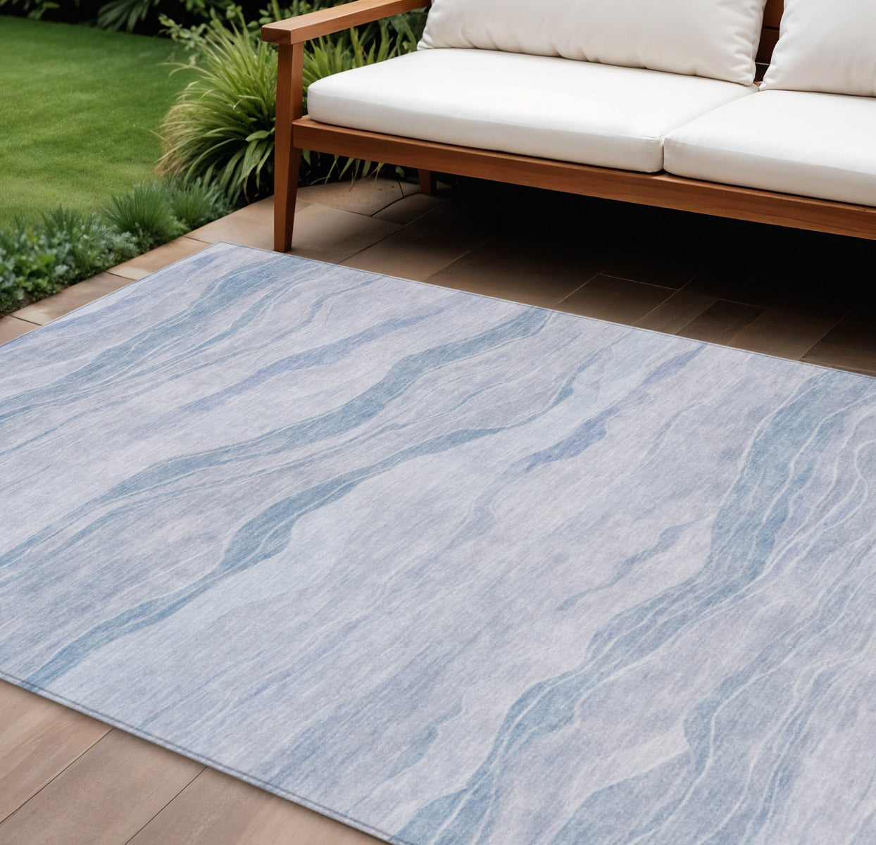 8' X 10' Sky Blue Striped Washable Indoor Outdoor Area Rug