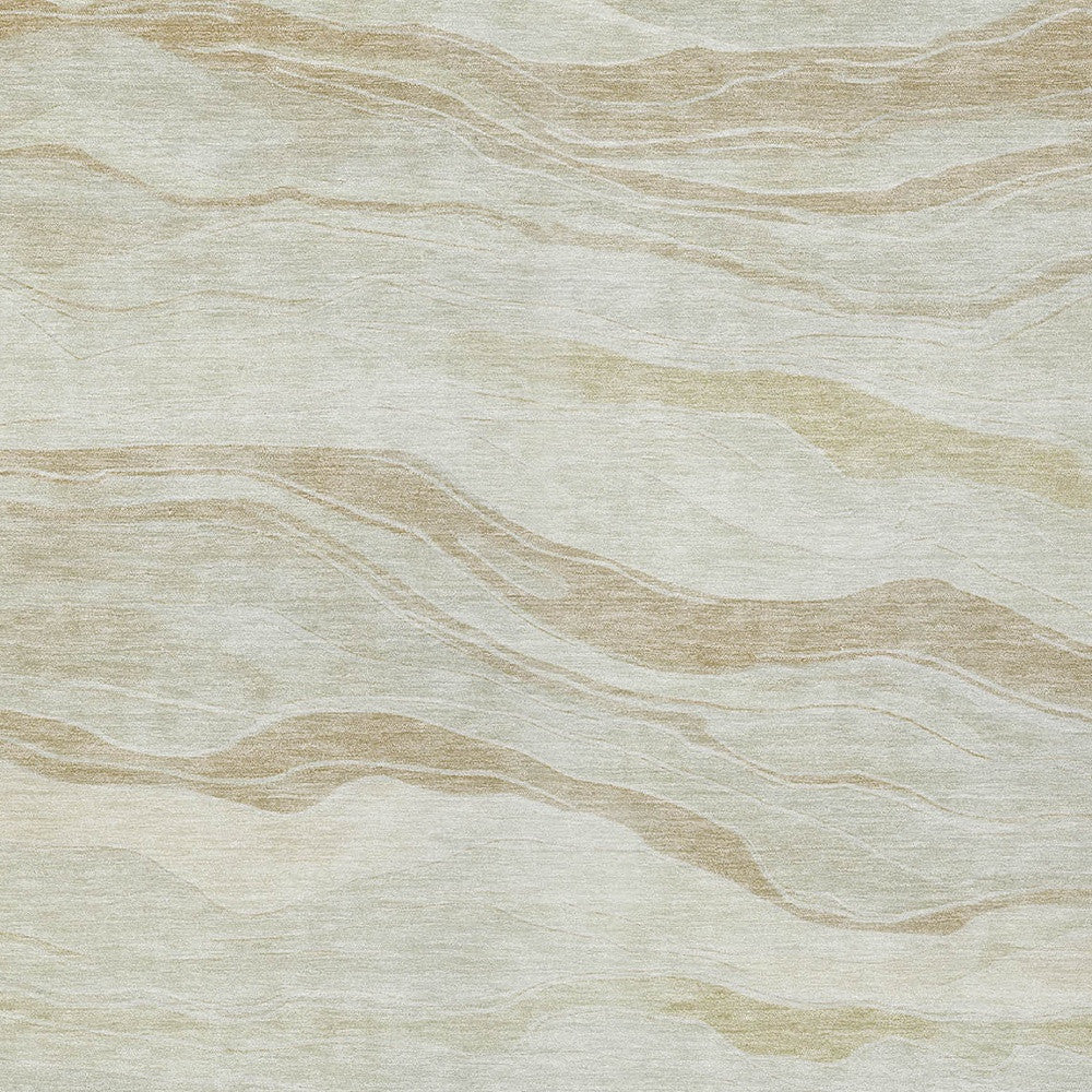 9' X 12' Beige Striped Washable Indoor Outdoor Area Rug
