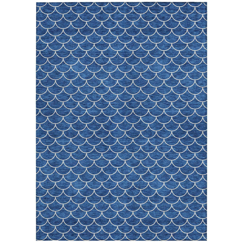 9' X 12' Blue And Ivory Geometric Washable Indoor Outdoor Area Rug