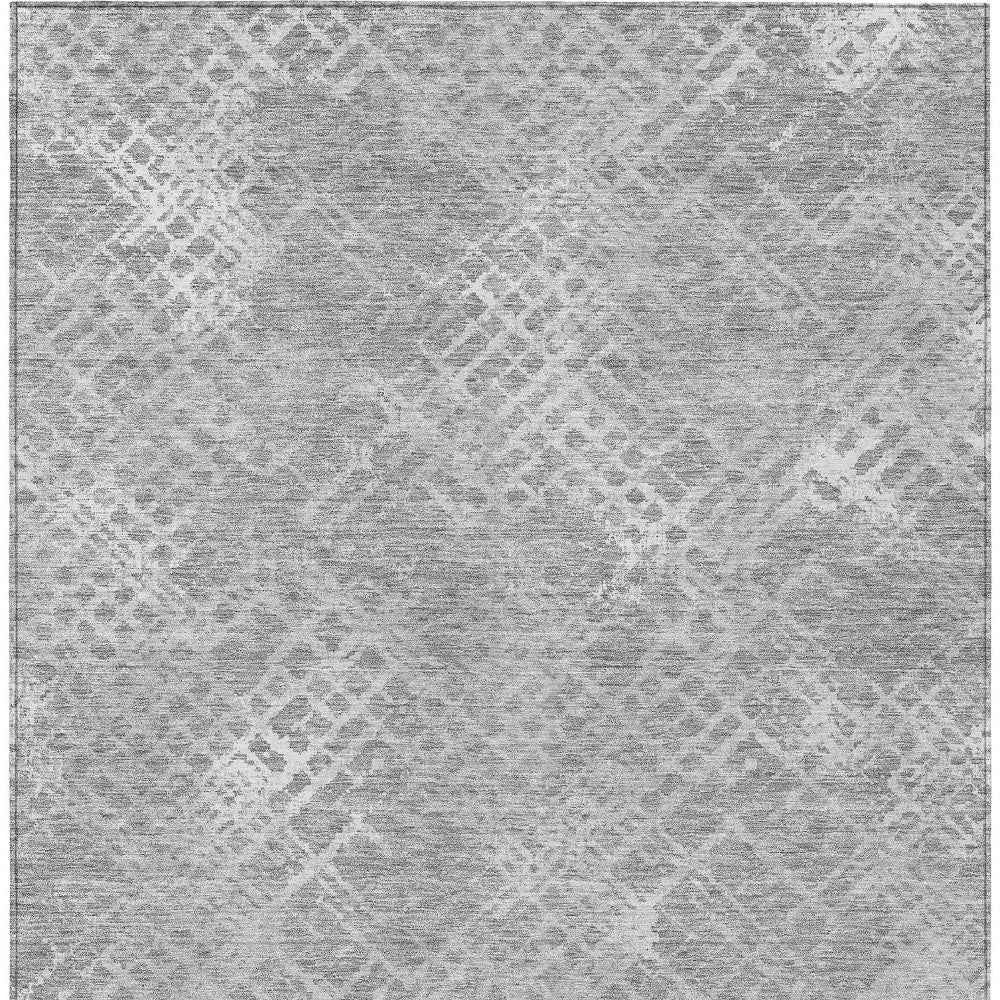 9' X 12' Gray And Silver Geometric Washable Indoor Outdoor Area Rug