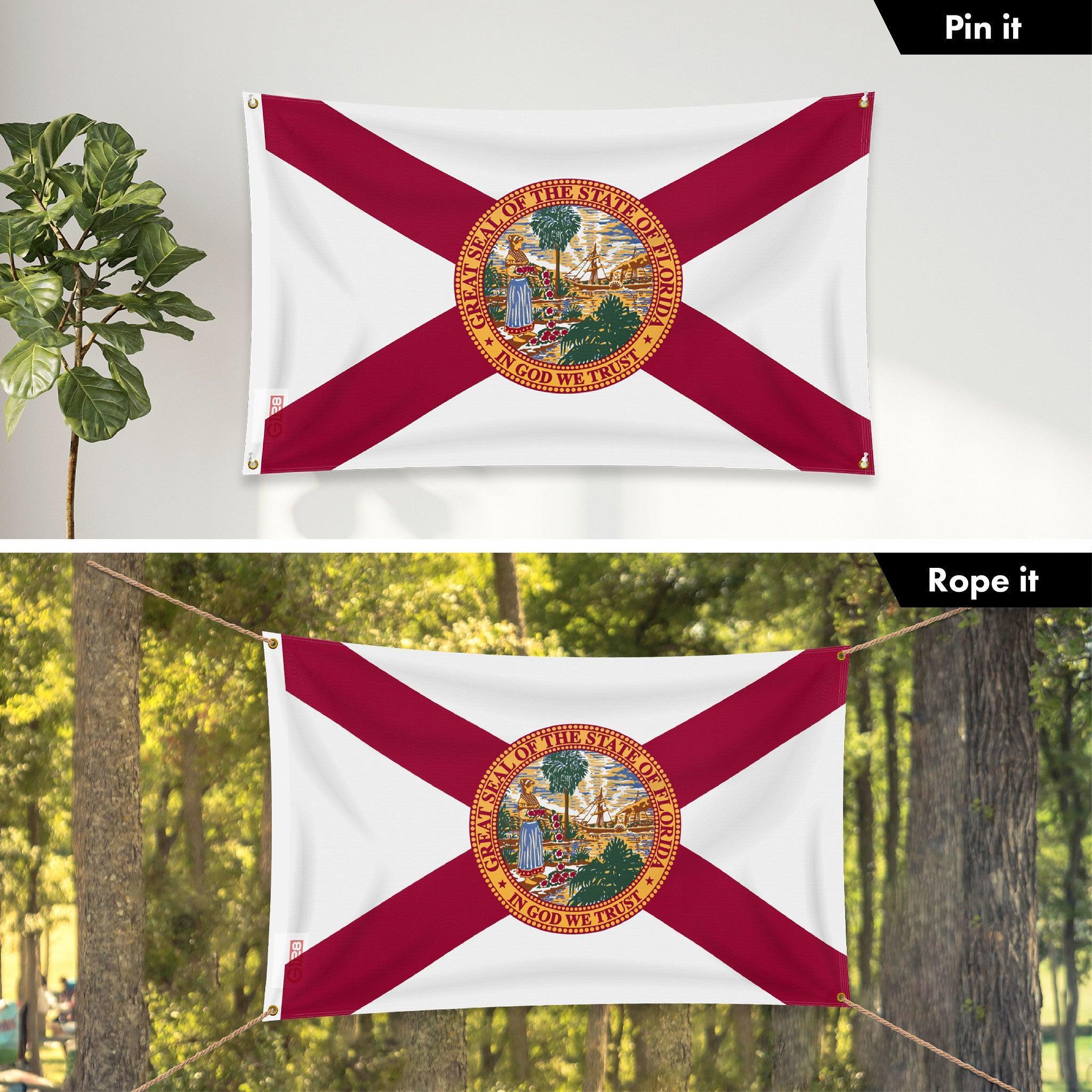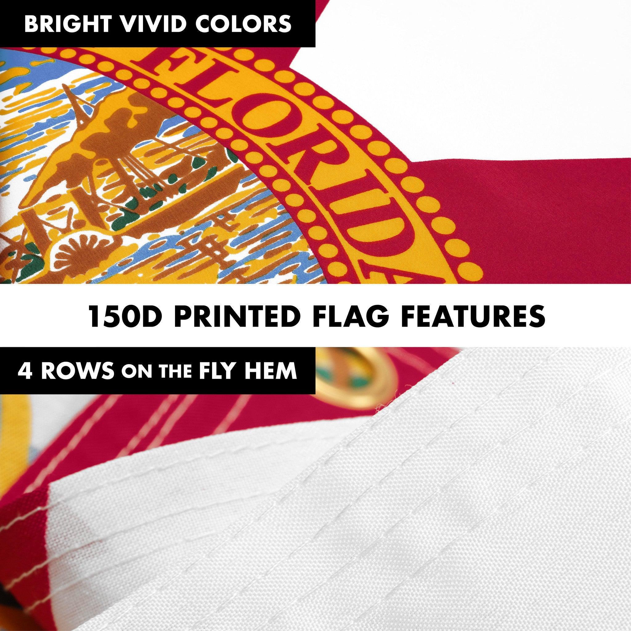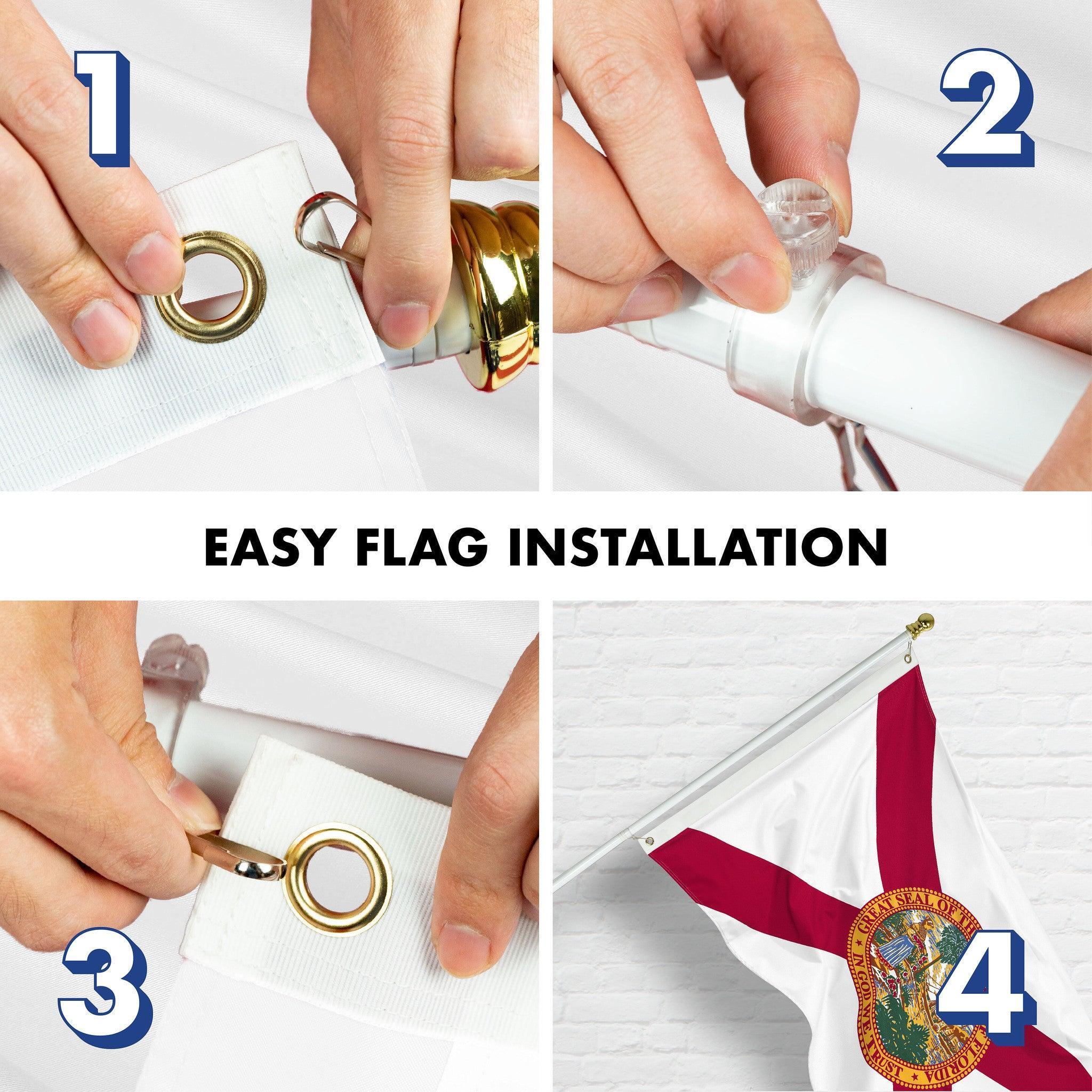 G128 Combo Pack: 6 Ft Tangle Free Aluminum Spinning Flagpole (White) & Florida FL State Flag 3x5 Ft, LiteWeave Pro Series Printed 150D Polyester, 4 Corner Brass Grommets | Pole with Flag Included