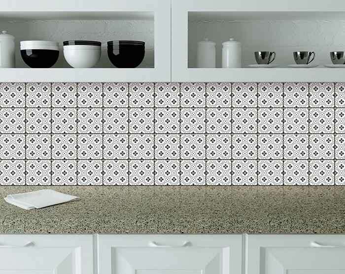 4" X 4" Black and White Rosa Peel and Stick Removable Tiles