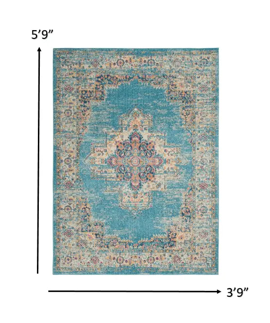 4' X 6' Light Blue Southwestern Power Loom Area Rug