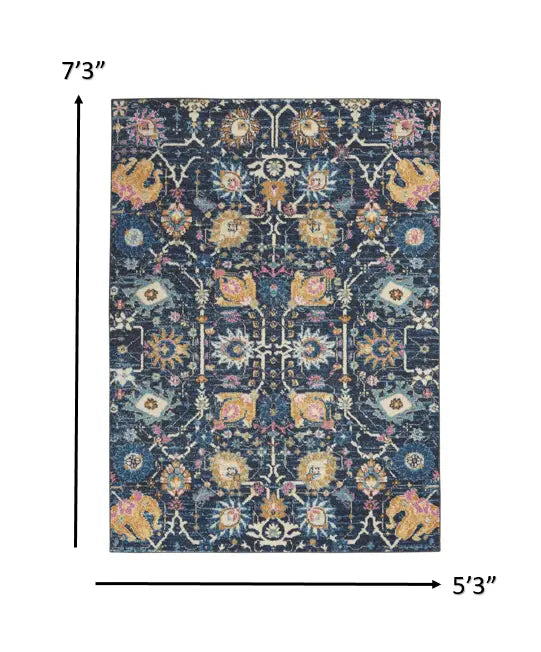 5' X 7' Navy Blue Floral Power Loom Area Rug