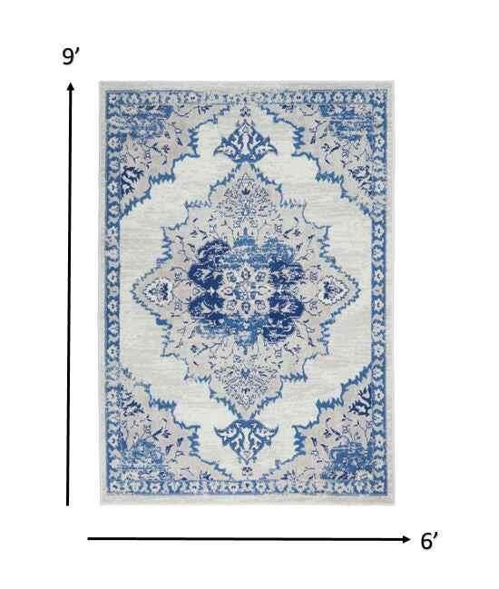 6' X 9' Navy Blue Floral Dhurrie Area Rug