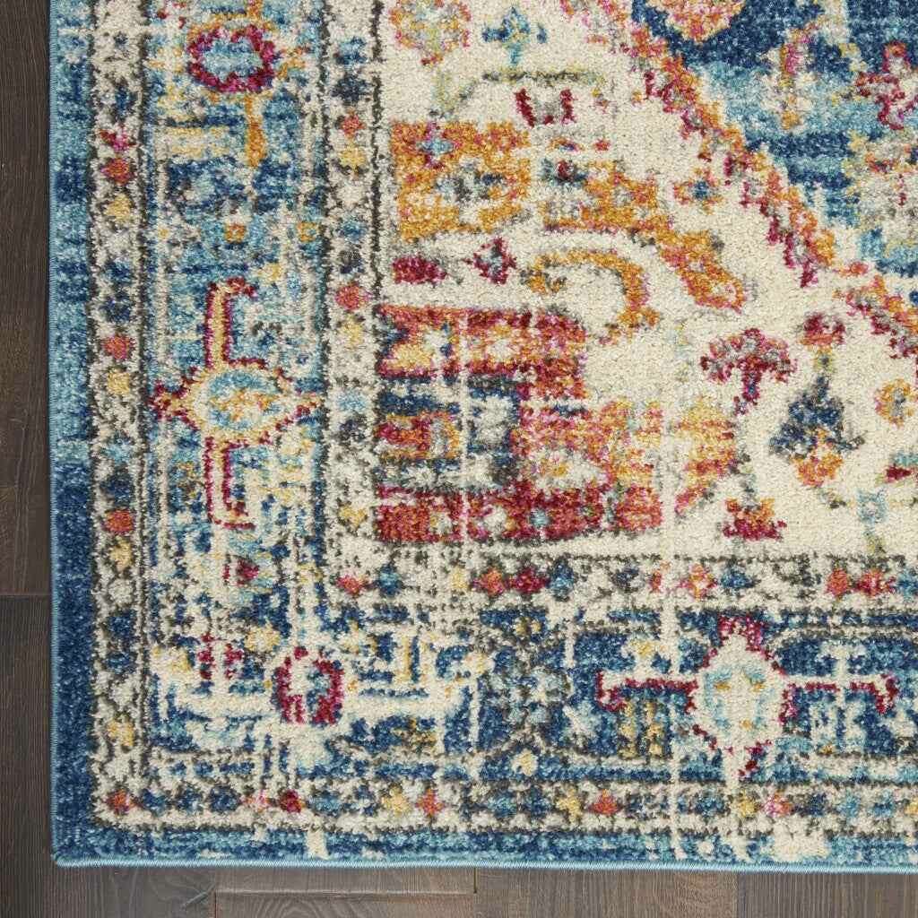 7' X 10' Blue And Ivory Power Loom Area Rug