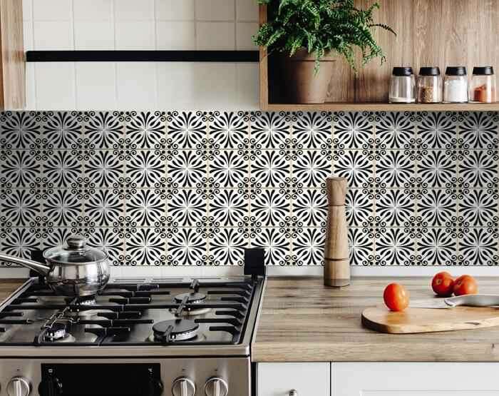 7" X 7" Black and White Flo Peel and Stick Removable Tiles