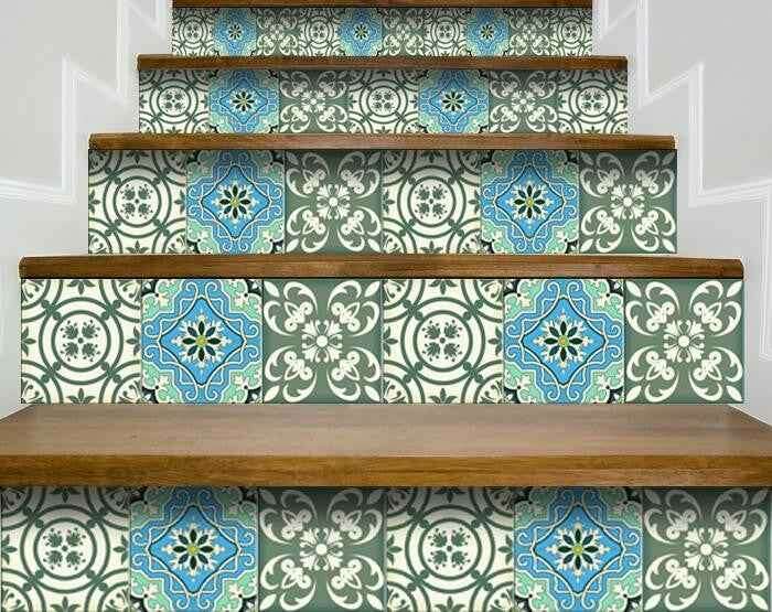 7" X 7" Sage And Aqua Floral Peel And Stick Removable Tiles