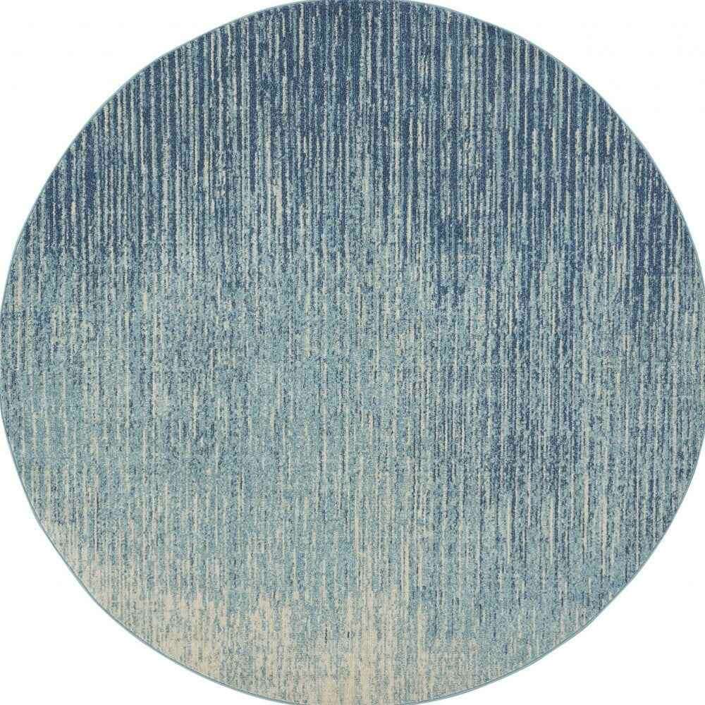 8' Ivory And Blue Round Abstract Power Loom Area Rug