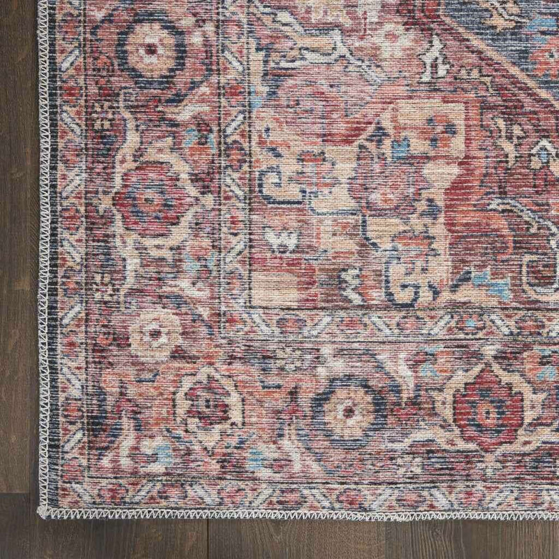 Add great coloration and comfortable texture to your space with this 8' x 10' red floral power loom distressed washable area rug. This rectangle shaped rug features a floral design in red to give it visual interest. A classic shape marries with good looking design for your space This superior Turkish rug represents the highest quality and is built to last. Place this area rug against a hardwood or tile floor and it will enliven your living space with style and sophistication. .28" H x 94.00" W x 118.00" D