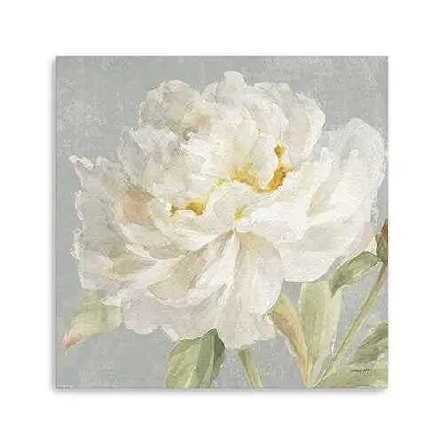 Bring some sizzle to your space with this eye-catching angelic white peony flower unframed print wall art. This print is a visual artistic expression that allows you to decorate your space in style. Reproduced for you on canvas, this hanging decorative accent will be a trendy and fashionable way to dress your walls. Adding this hanging wall art to your space to make your room feel more finished and attractive. Instantly liven up your space with this art that brings color and dimension to your walls. 30 inches H x 30 inches W x 1.25 inches D