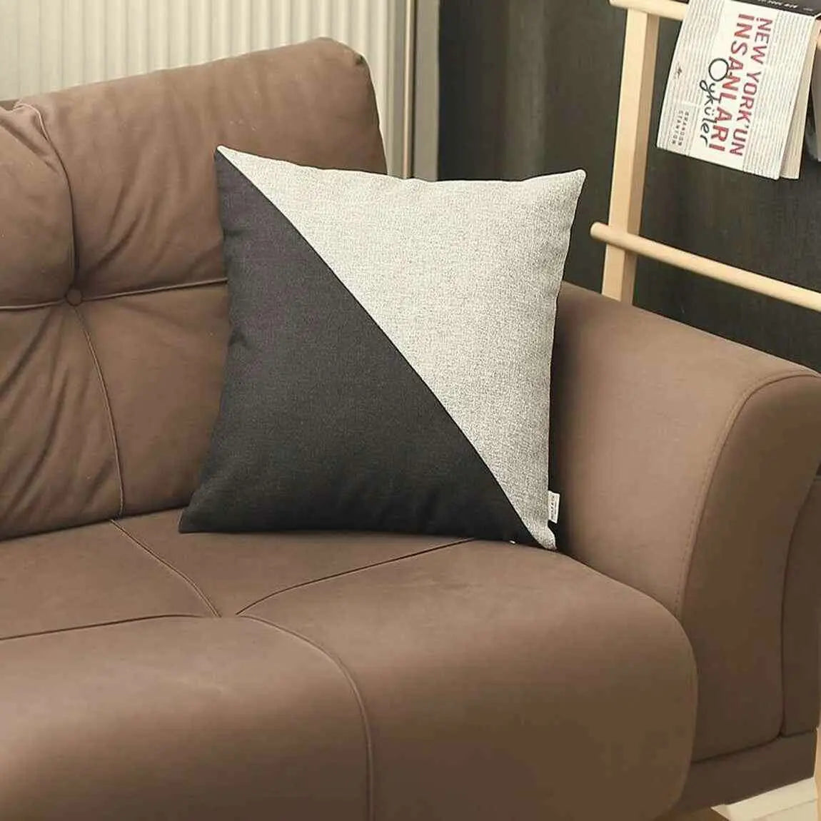 Bring in an eye-catching element to your home with this Gray and Black Diagonal Decorative Throw Pillow that looks simple yet elegant with its modern and minimal design. Divided diagonally with two tones, the light gray side calls for a sophisticated vibe in the room while the charcoal black end adds up to a striking contrast. Flaunting the finest Turkish craftsmanship, this pillow is made of premium polyester fabric which is OEKO-TEX Standard 100 certified, that ensures not only top-notch quality and product safety but also enhanced durability and easy spot cleaning. Filled with a soft recycled poly filling for a fluffy look and maximum comfort while the hidden zipper closure around the edges provides a luxurious seamless finish. Pair this contrasting decorative throw pillow against bold or neutral hues to instantly spruce up your living room. 18” x 18” x 1”