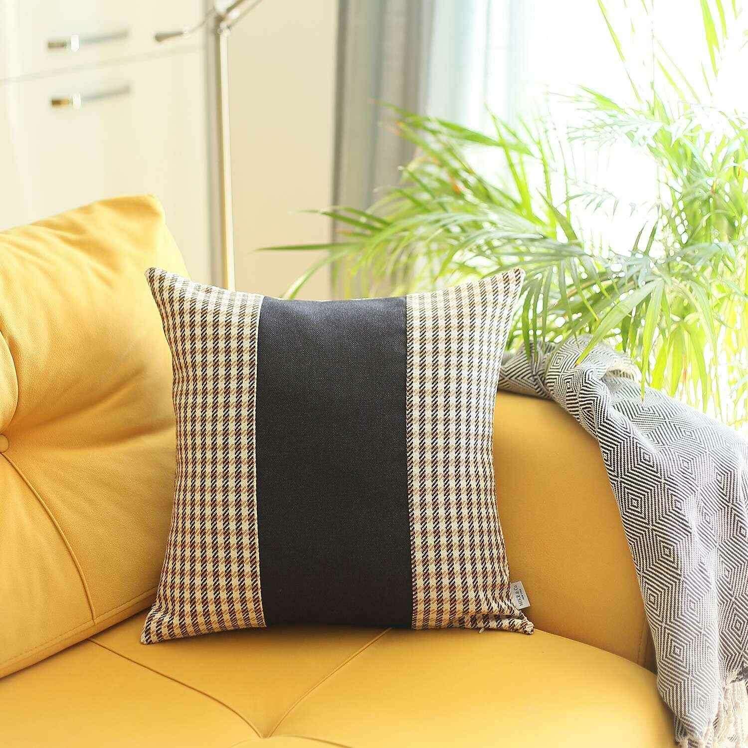 Emanating a classic bohemian vibe in a modern color palette, this Tan Houndstooth Decorative Throw Pillow will pull off the aesthetics of any contemporary or bohemian styling. The classy tan houndstooth pattern in jacquard weaving laid a stylish foundation to flaunt a charcoal black section in the middle. Flaunting the finesse of Turkish craftsmanship, this pillow is made of 100% premium polyester to ensure enhanced durability while the OEKO-TEX Standard 100 certification speaks of product safety. The hidden zipper closure provides a neat and seamless look around the edges that feels smooth and luxurious on the touch. This pillow comes with a soft poly filling inside with a cotton cover that will last for a long time, providing warmth and comfort. Pair this classic decorative pillow with any neutral or vibrant schemes for an elegant ensemble. 18” x 18” x 1”