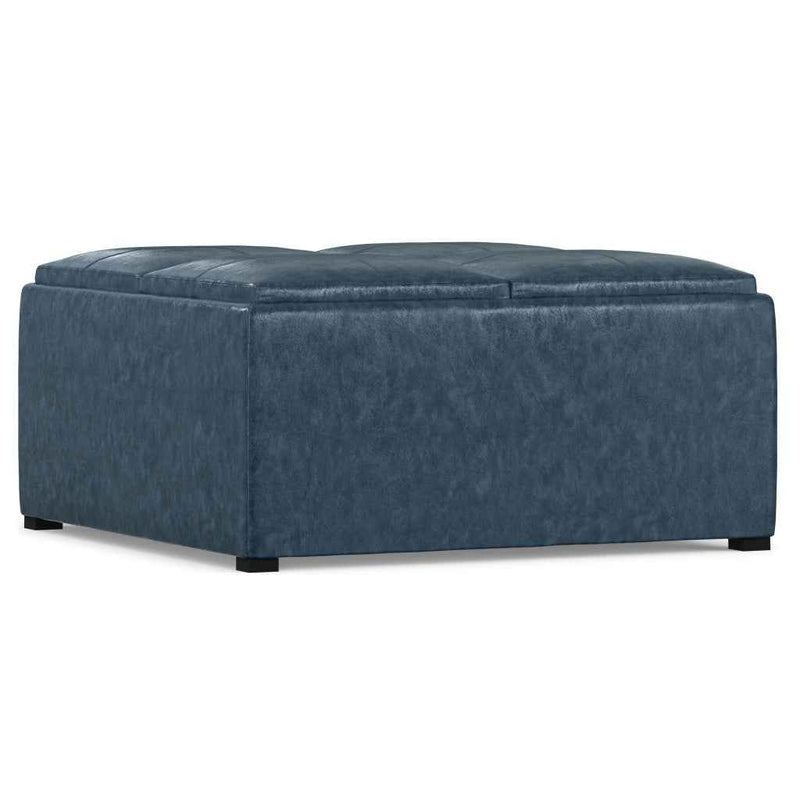 35" Blue and Dark Brown Leather Cocktail Ottoman With Storage