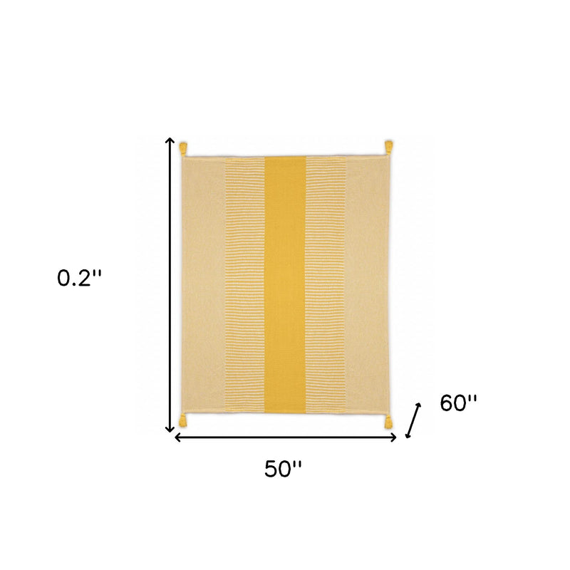 Yellow Woven Cotton Striped Throw Blanket