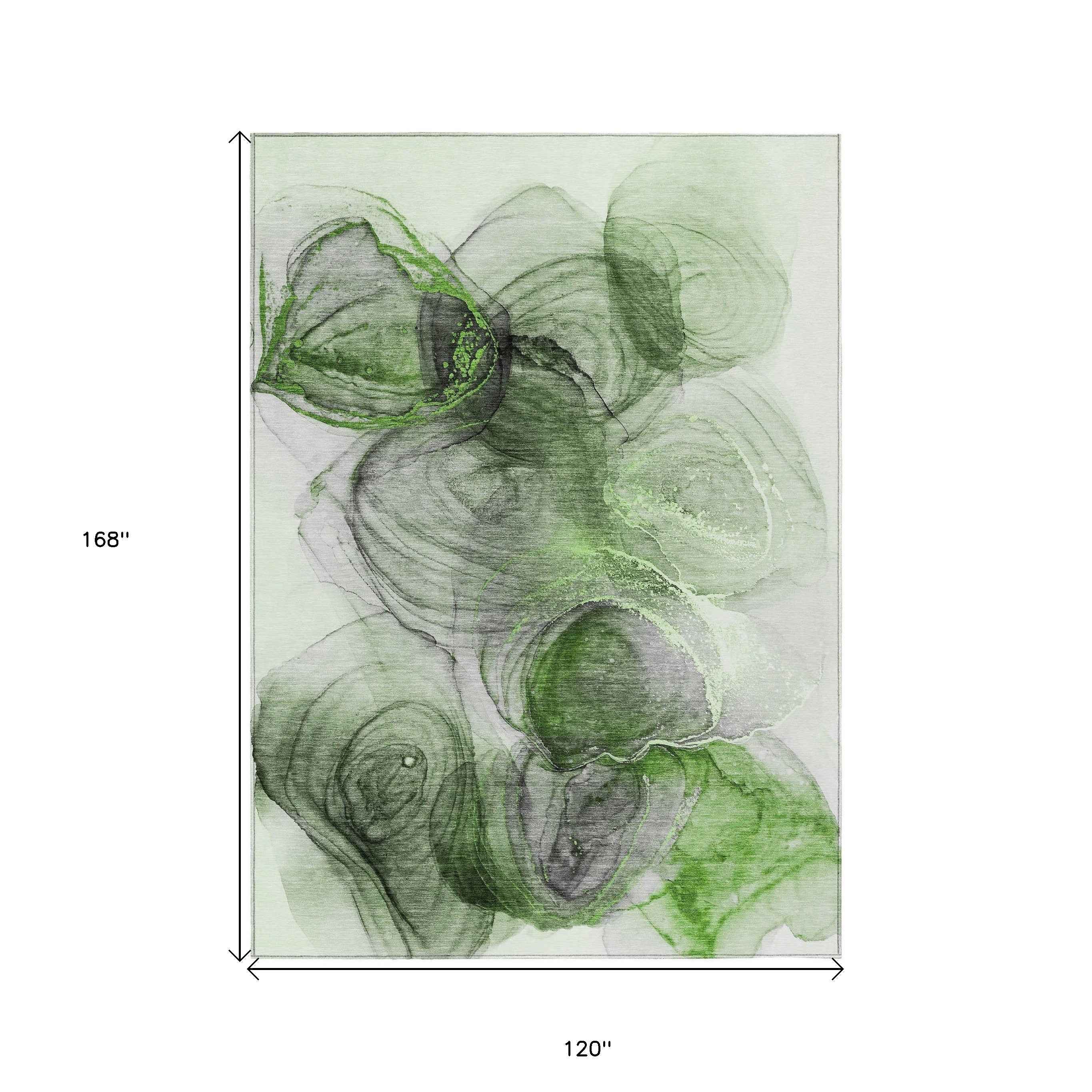 10' X 14' Olive Green Abstract Washable Non Skid Indoor Outdoor Area Rug