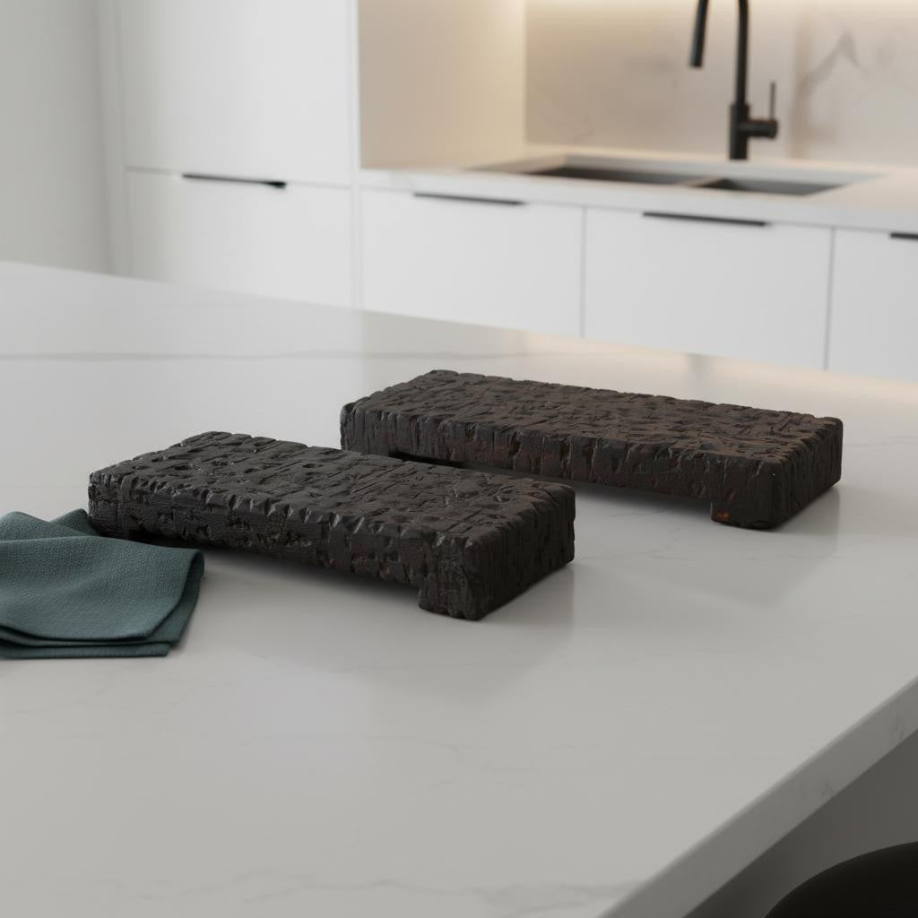 Set of Two Brown Wood Handmade Serving Tray