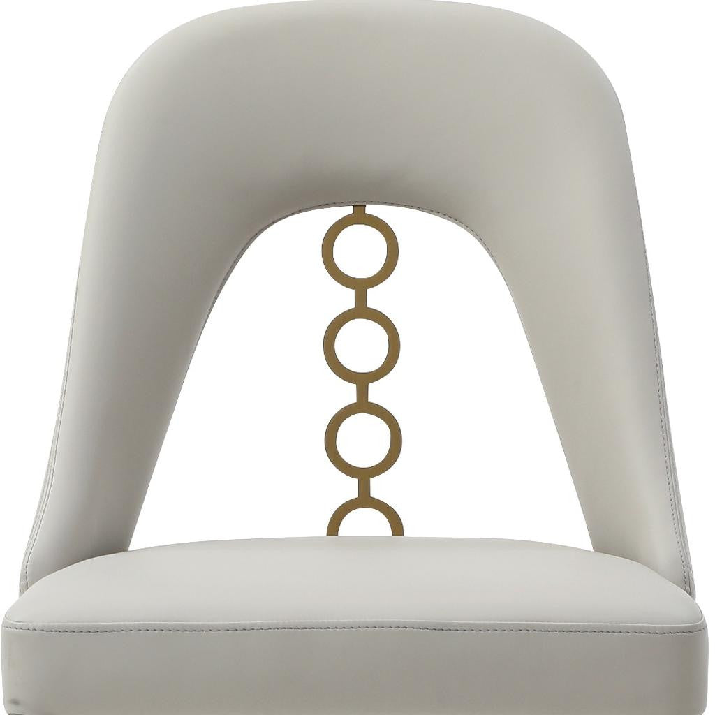 Set of Two Light Gray and Gold Faux Leather and Stainless Steel Open Back Dining Side Chairs