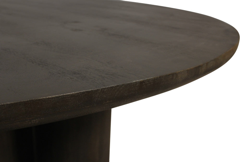 This seven piece dark brown round solid wood dining set with six chairs is the right blend of style and comfort. It is designed to be updated and stylish yet comfortable. This round table is made with a solid wood base and top surface giving it a unified and fashionable look. Find beauty in imperfection with this purposefully distressed table. The finish will bring a slightly vintage, rustic, and comfortable vibe to your home. This dining set is not just a table, but also includes a set of 6 wing back chairs that allows you to enjoy meals in the company of people closest to you. Dining is a time to gather with friends, family and loved ones. This dining set is the centerpiece that will create a memorable experiences everyday and on special occasions. 30-inch h x 63-inch w x 63-inch d.